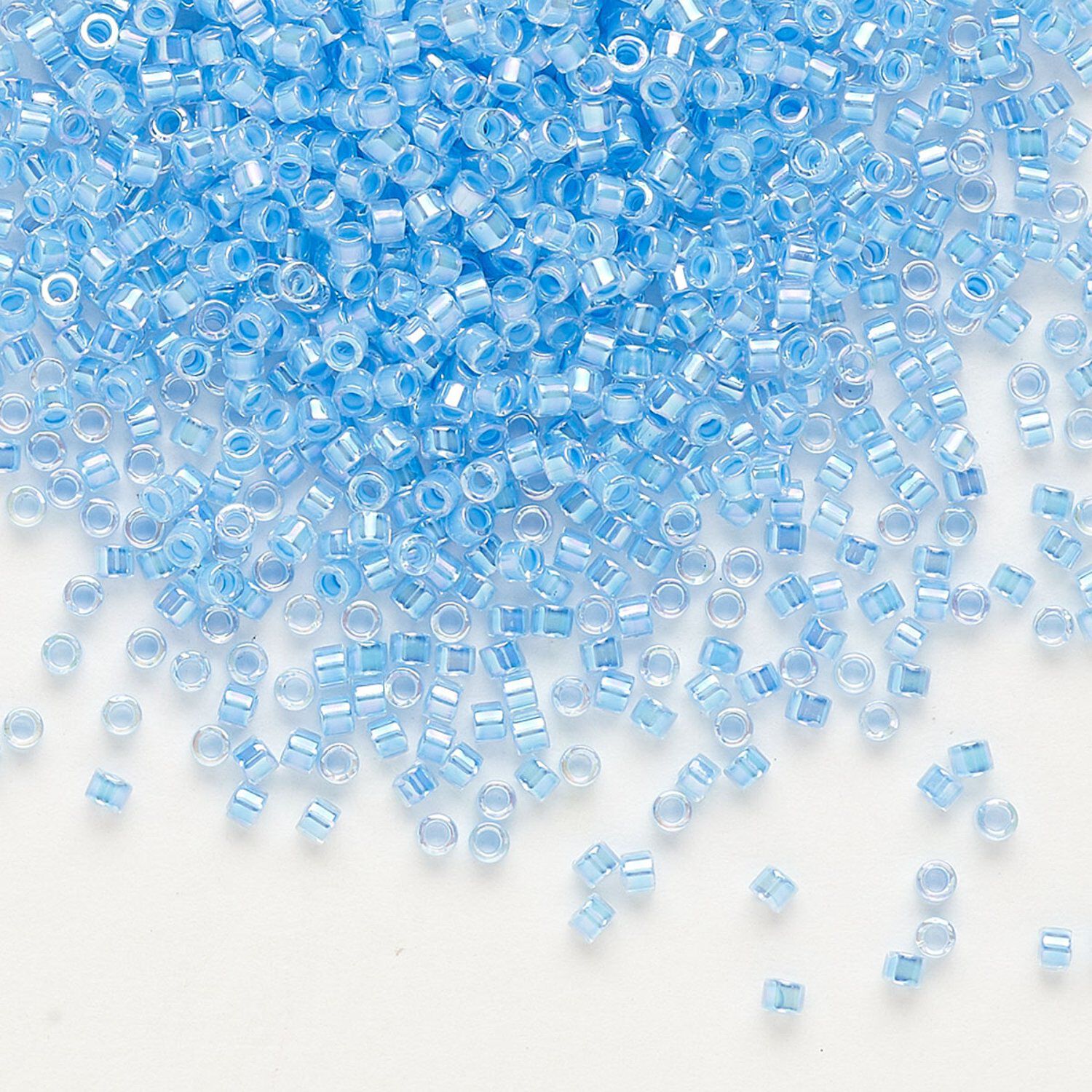 Seed bead, Delica®, glass, pkg/50g, #11 round, translucent light blue-lined rainbow crystal clear (DB-0076).
