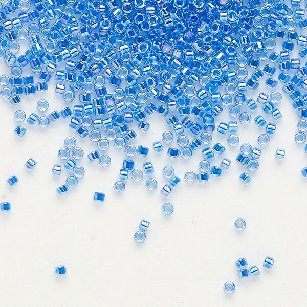 Seed bead, Delica®, glass, pkg/7.5g, #11 round, translucent blue-lined rainbow crystal clear (DB-0077).