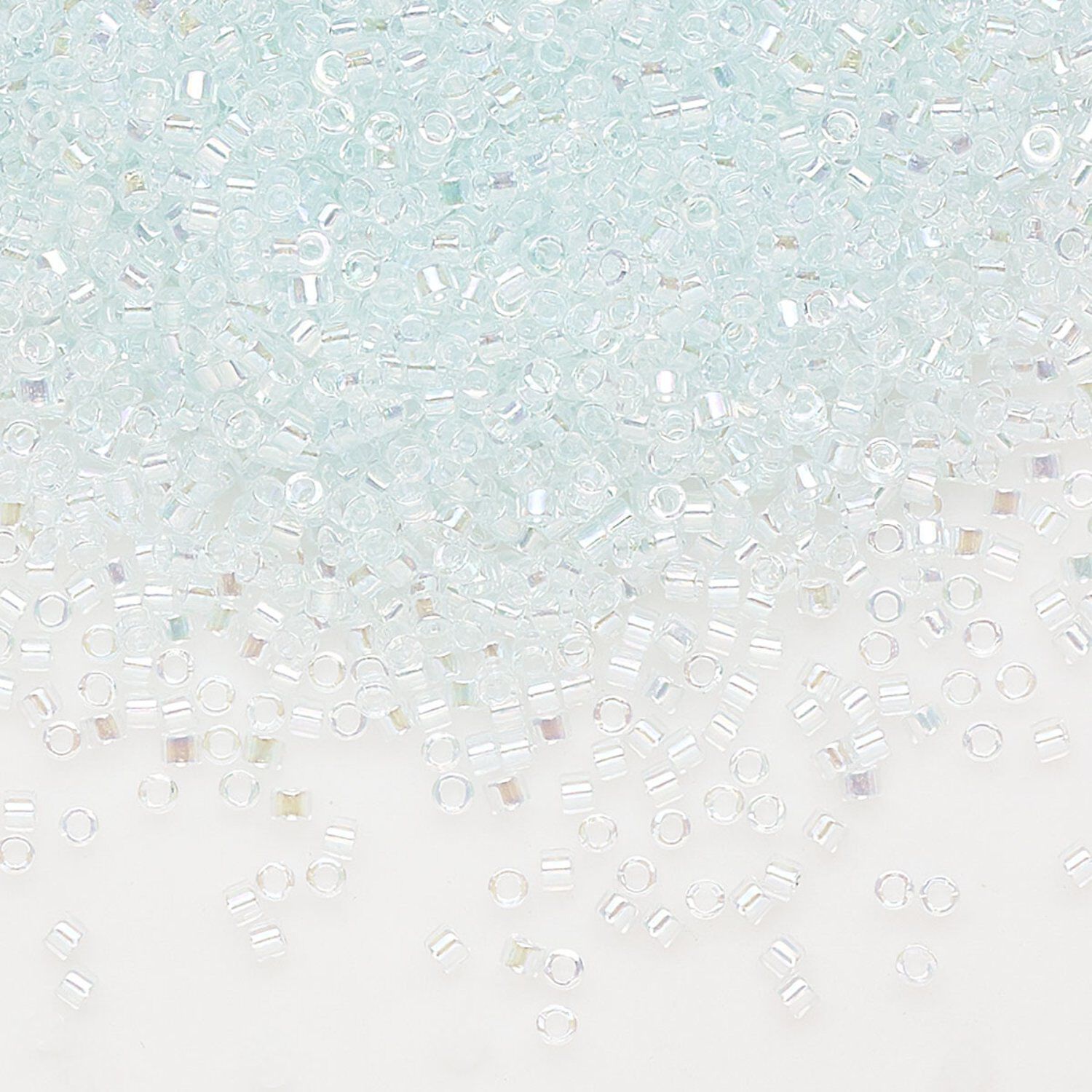 Seed bead, Delica®, glass, pkg/7.5g, #11 round, translucent pale aqua-lined rainbow crystal clear (DB-0083).