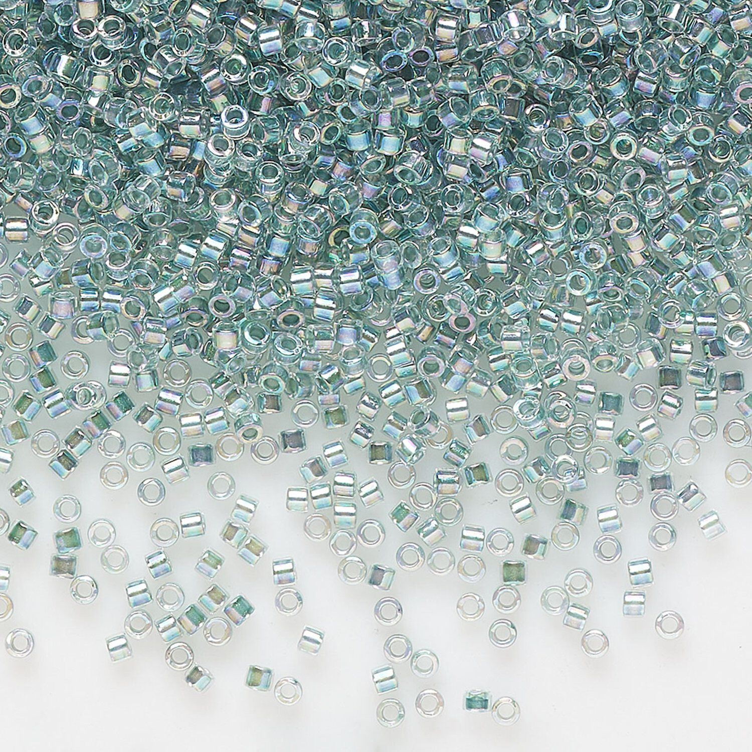 Seed bead, Delica®, glass, pkg/50g, #11 round, translucent seafoam-lined rainbow crystal clear (DB-0084).