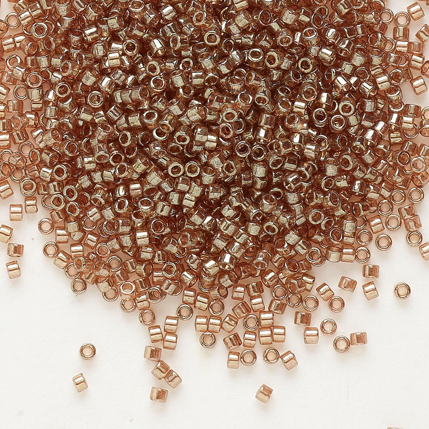 Seed bead, Delica®, glass, pkg/50g, #11 round, translucent gold luster peach topaz (DB-0102).