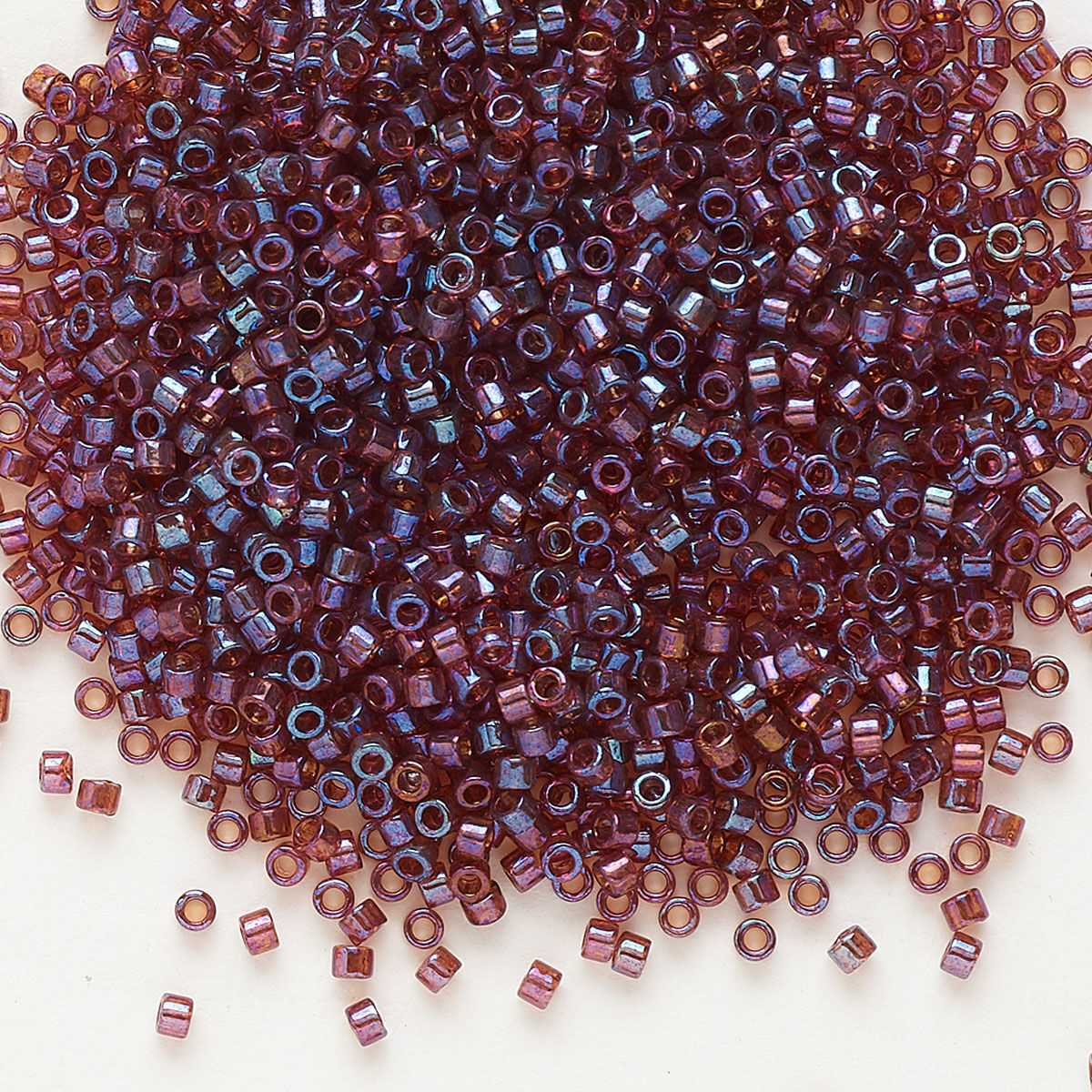 Seed bead, Delica®, glass, pkg/7.5g, #11 round, translucent rainbow gold luster claret (DB-0104).