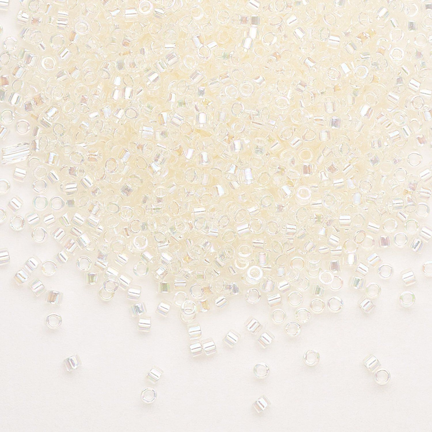 Seed bead, Delica®, glass, pkg/250g, #11 round, translucent rainbow glazed luster crystal ivory (DB-0109).