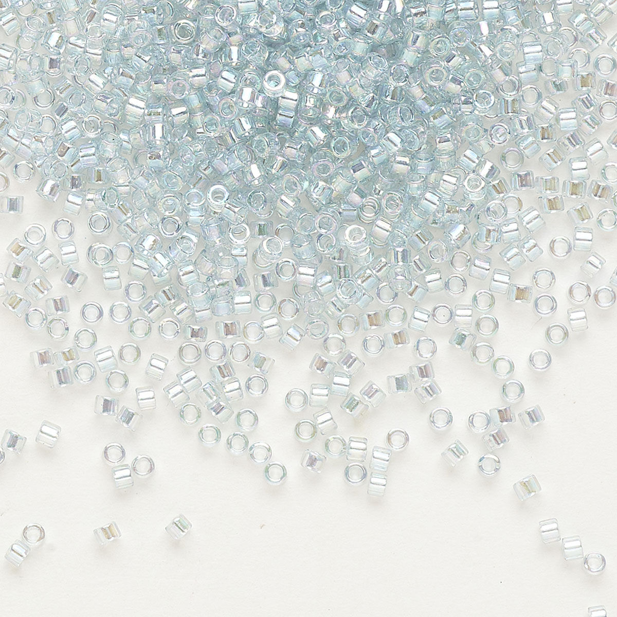 Seed bead, Delica®, glass, pkg/50g, #11 round, translucent rainbow glazed luster light aqua (DB-0110).