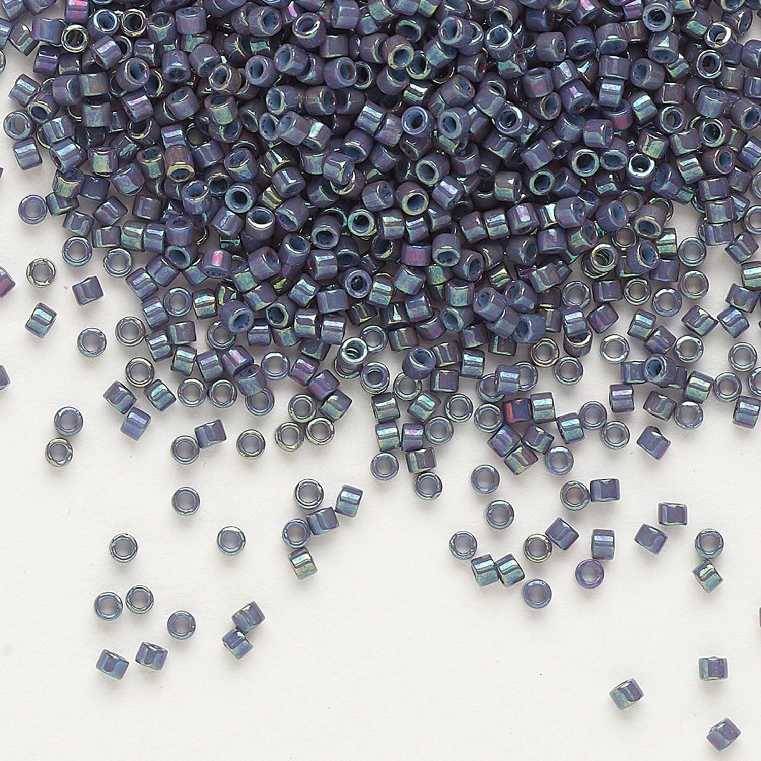 Seed bead, Delica®, glass, pkg/50g, #11 round, opaque gold luster blue-grey (DB-0132).