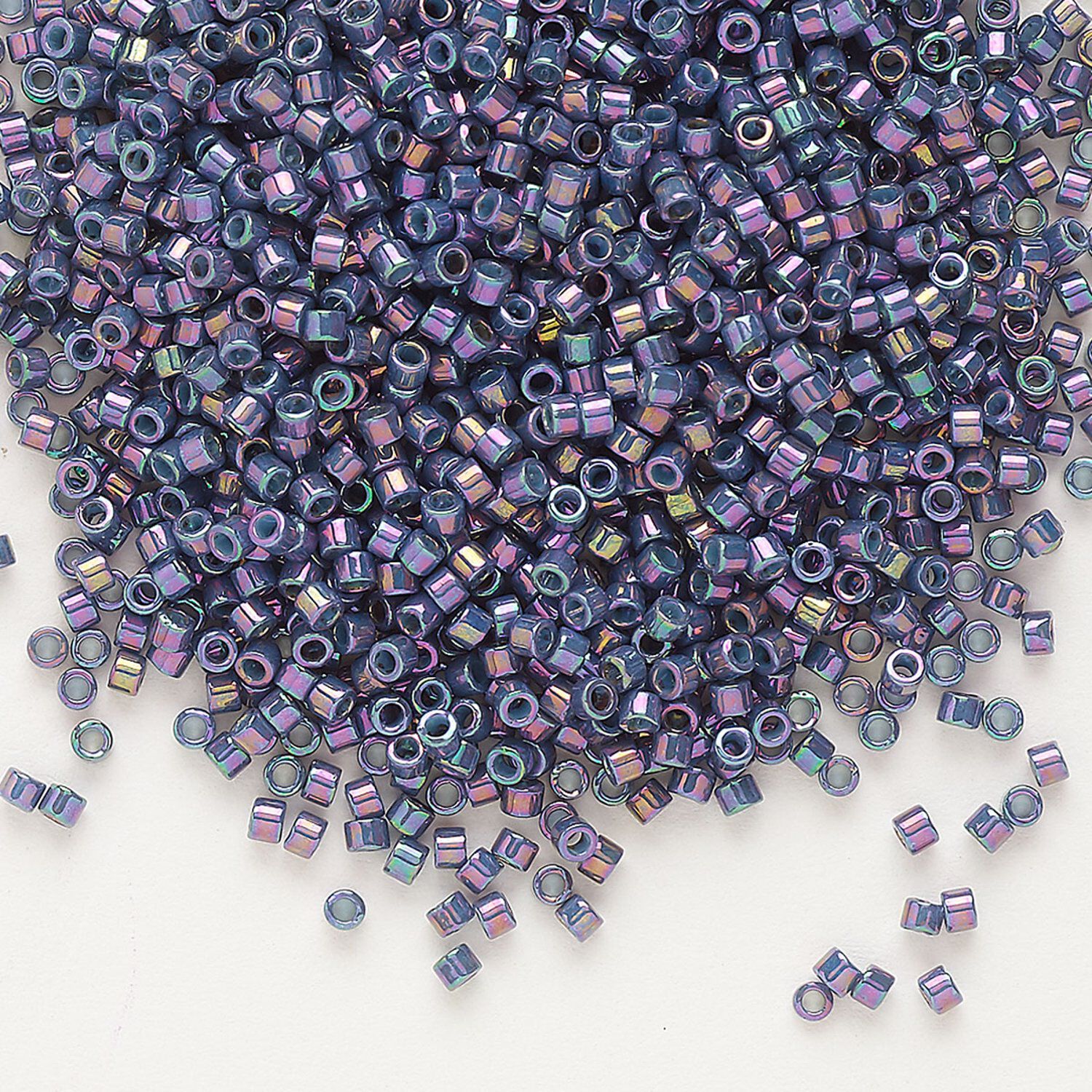 Seed bead, Delica®, glass, pkg/50g, #11 round, opaque rainbow gold luster purple grey (DB-0134).
