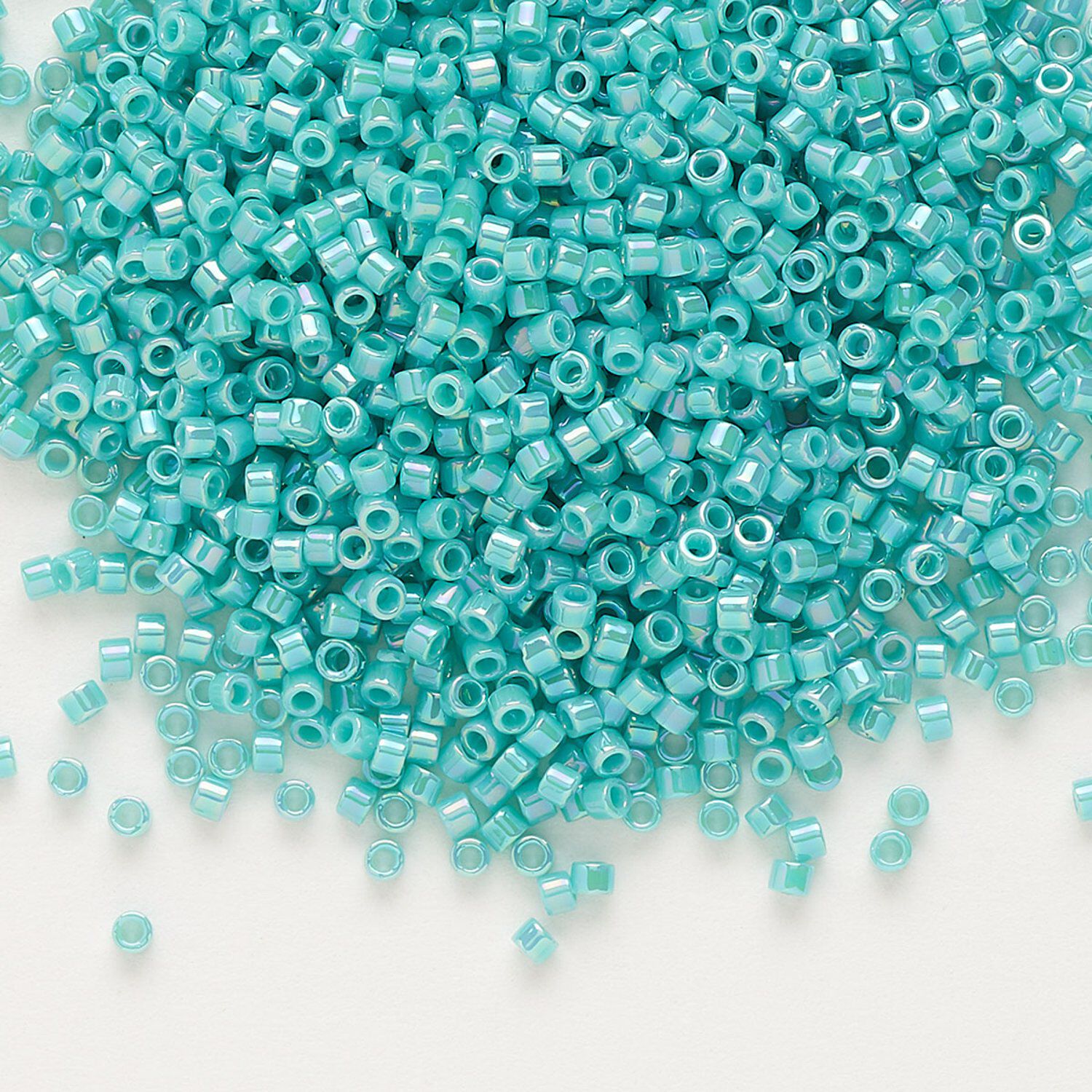 Seed bead, Delica®, glass, pkg/50g, #11 round, opaque rainbow turquoise green (DB-0166).