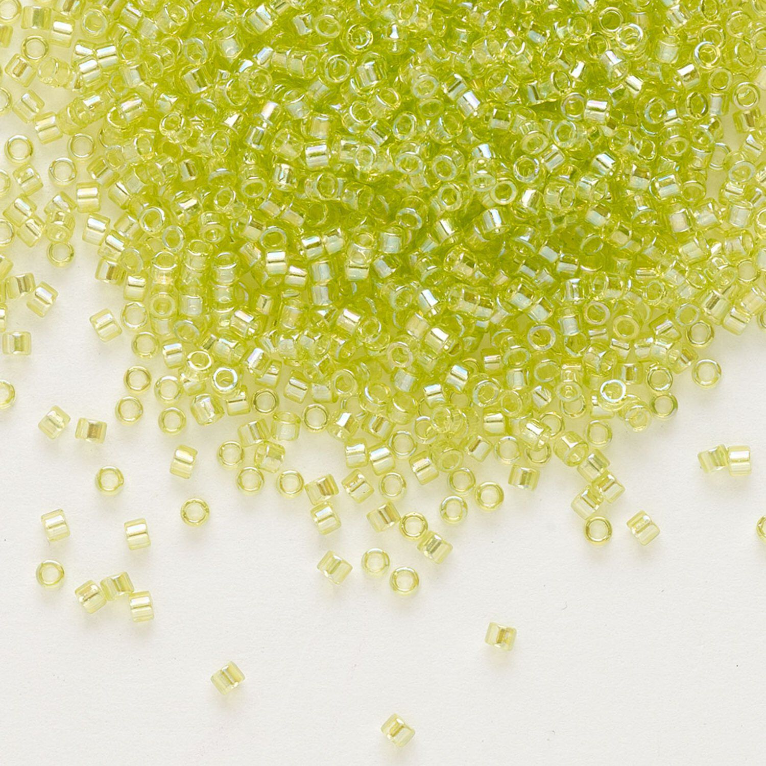 Seed bead, Delica®, glass, pkg/50g, #11 round, translucent rainbow chartreuse (DB-0174).