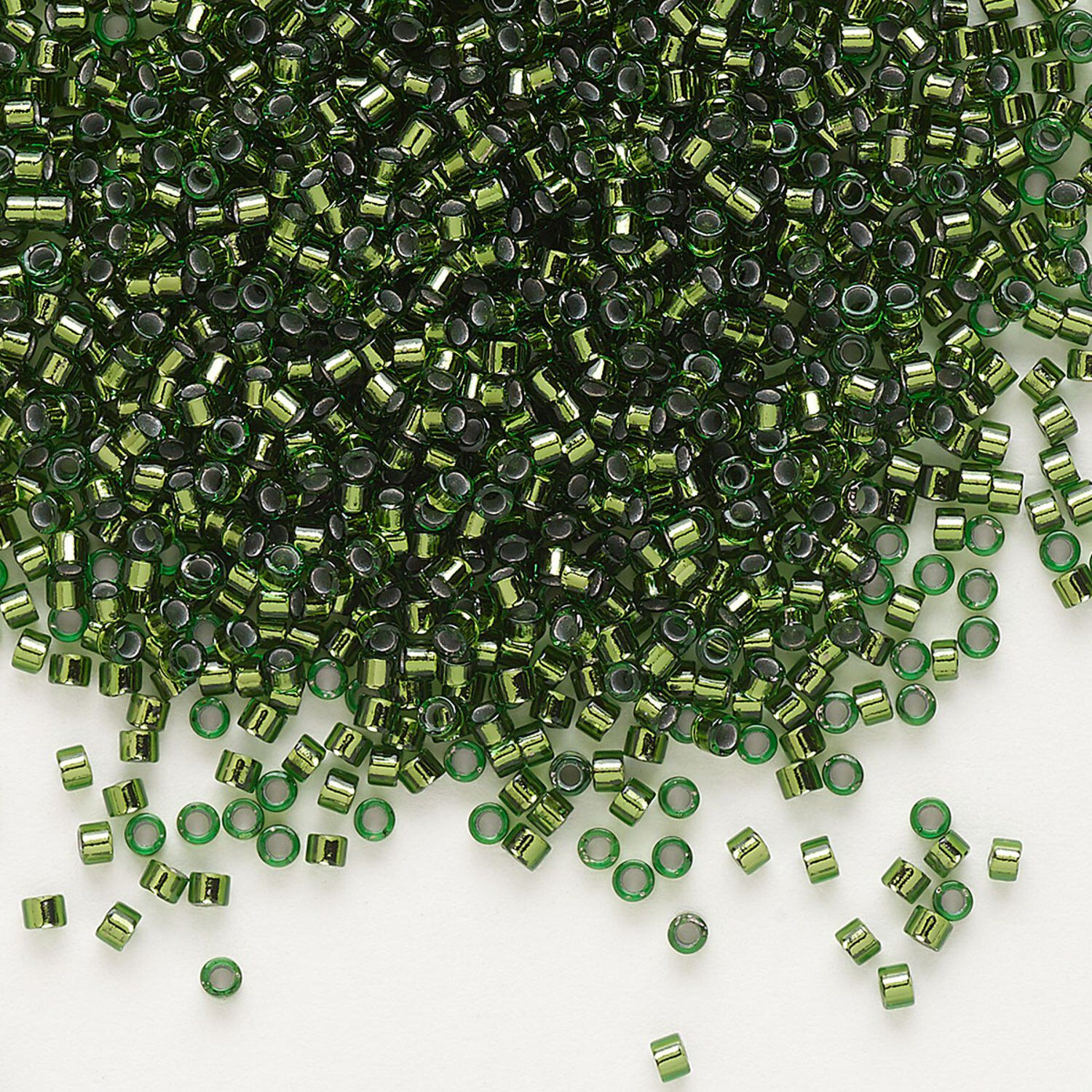 Seed bead, Delica®, glass, pkg/50g, #11 round, transparent copper-lined jade (DB-0182).