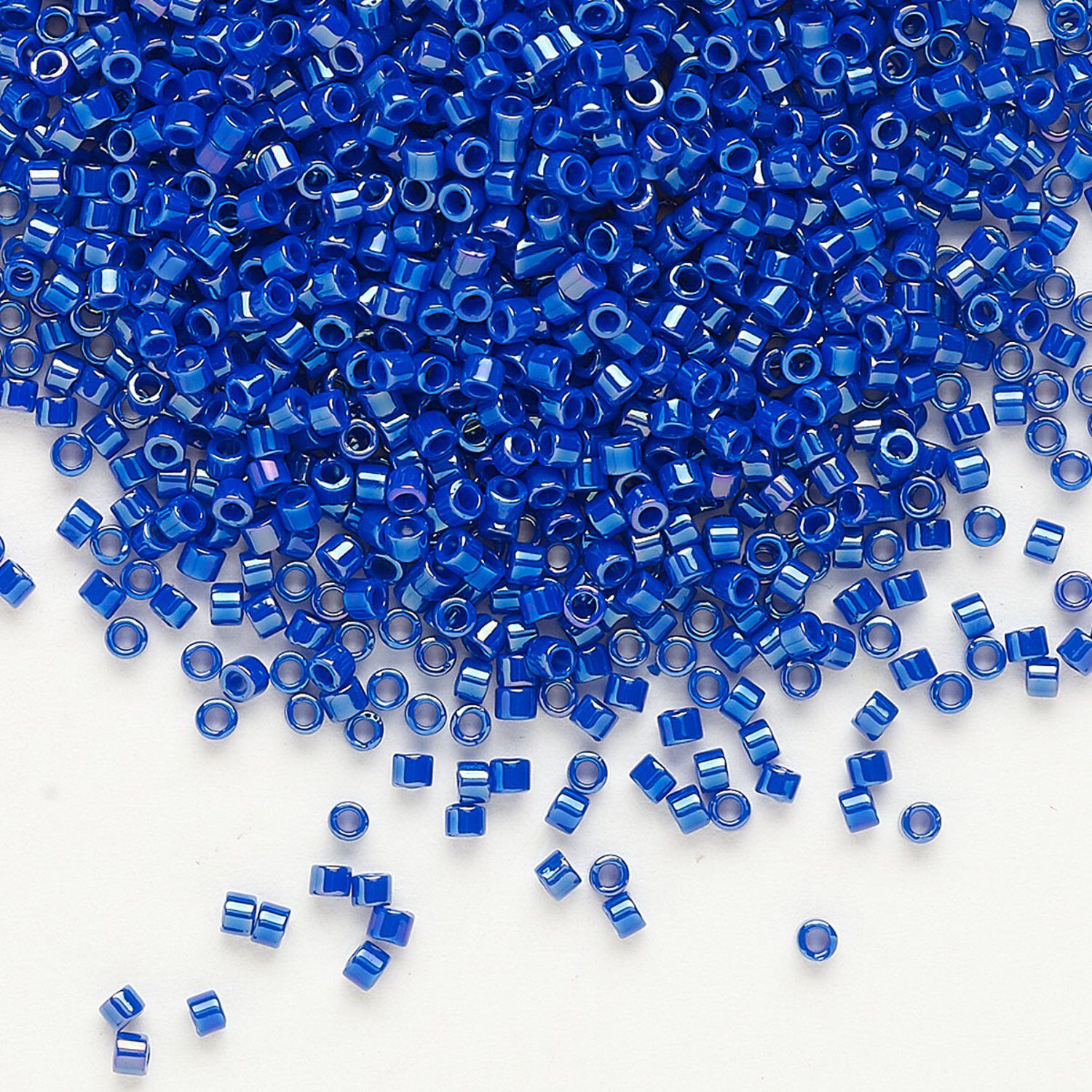 Seed bead, Delica®, glass, pkg/50g, #11 round, opaque rainbow luster cobalt (DB-0216).