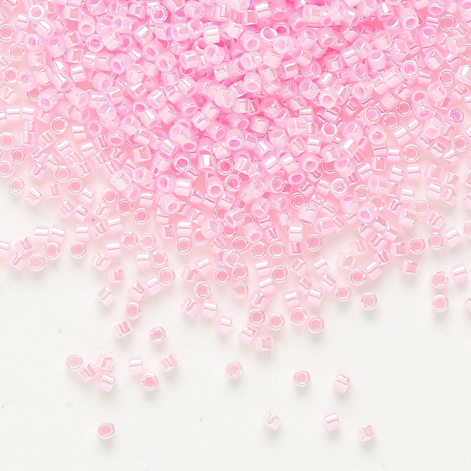 Seed bead, Delica®, glass, pkg/250g, #11 round, opaque inside dyed color luster cotton candy pink (DB-0245).