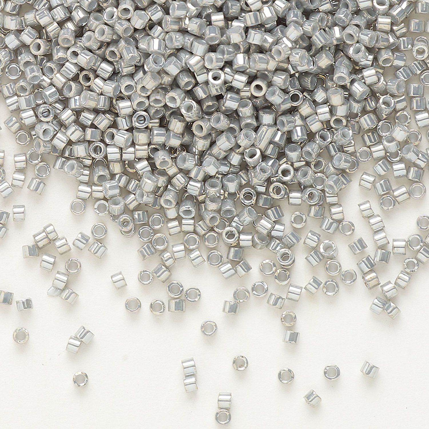 Seed bead, Delica®, glass, pkg/50g, #11 round, opaque rainbow gold luster grey (DB-0251).