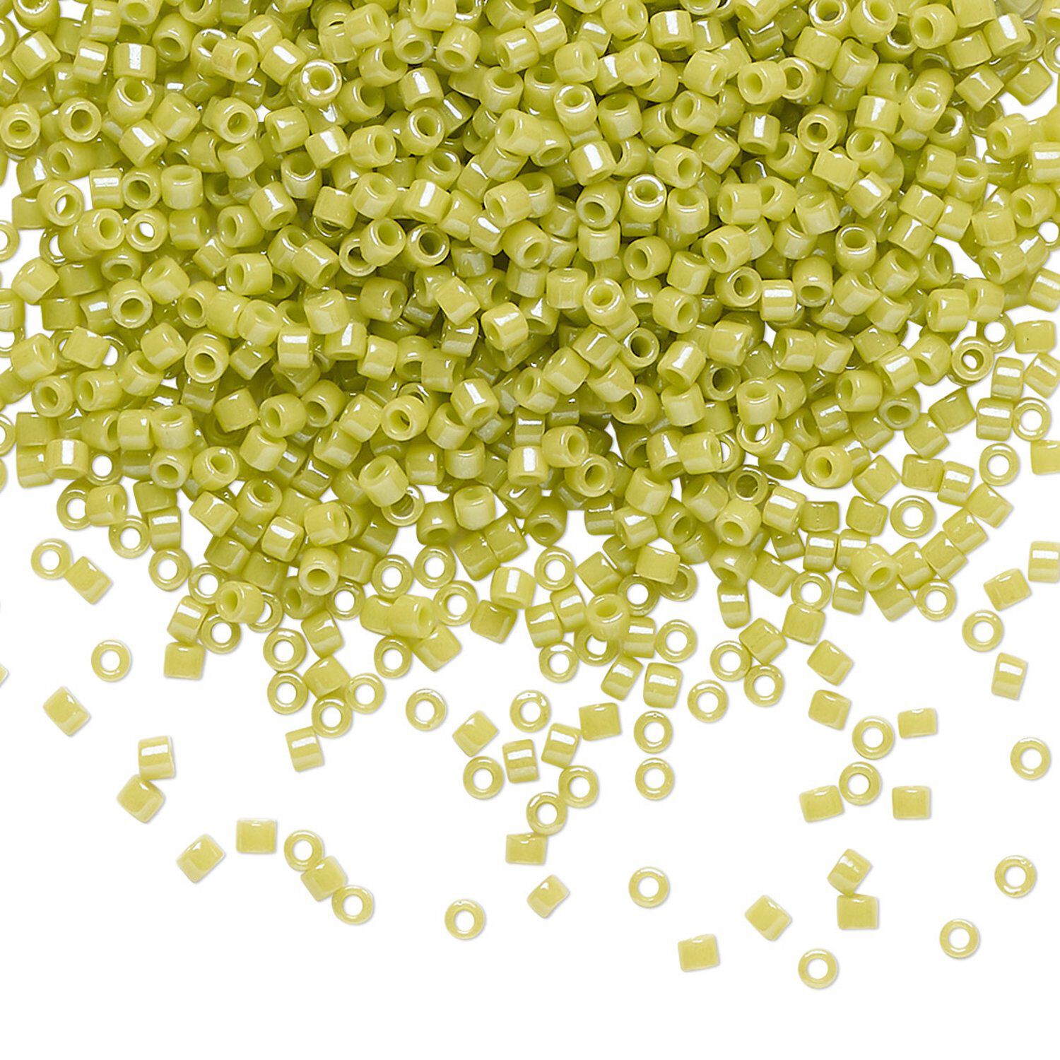 Seed bead, Delica®, glass, pkg/250g, #11 round, opaque glazed luster chartreuse (DB-0262).