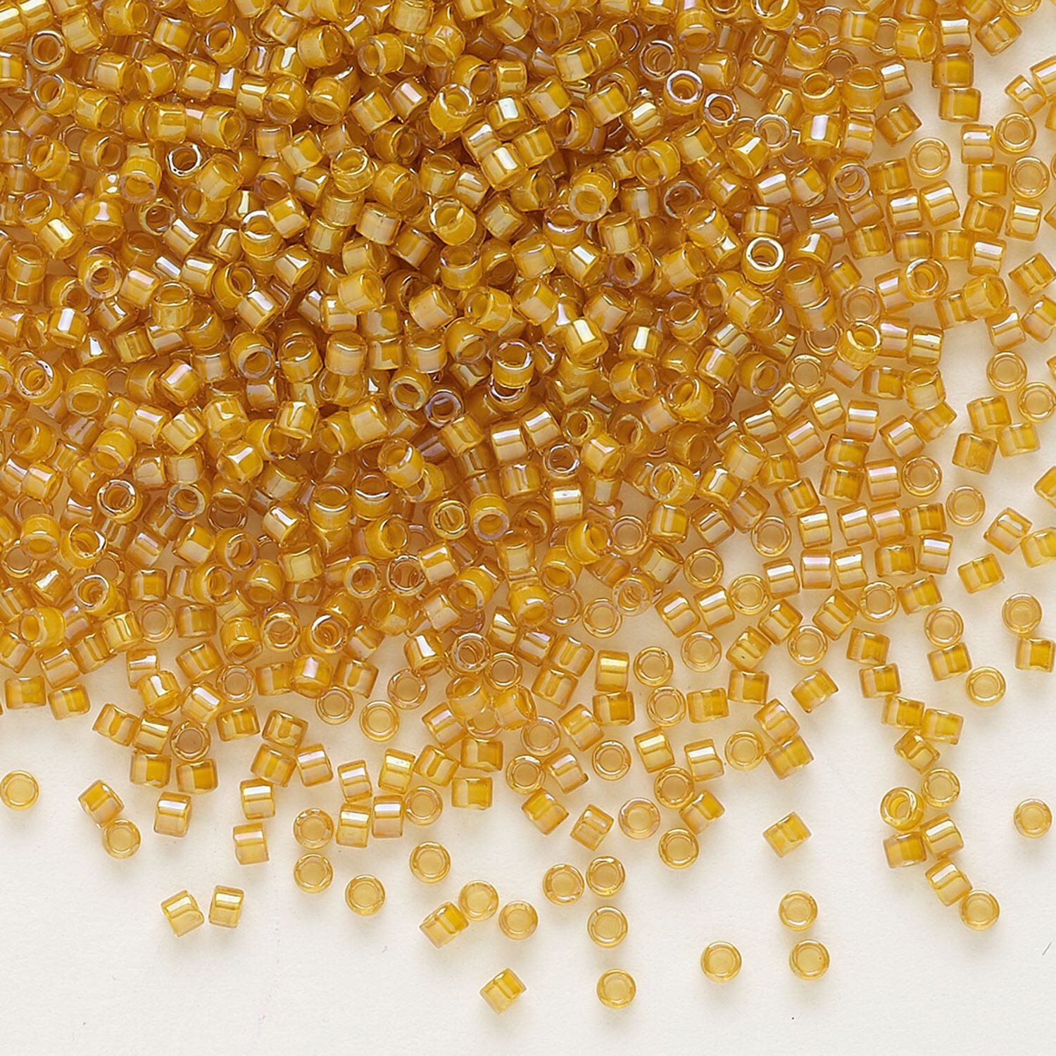 Seed bead, Delica®, glass, pkg/50g, #11 round, translucent goldenrod-lined luster topaz (DB-0272).