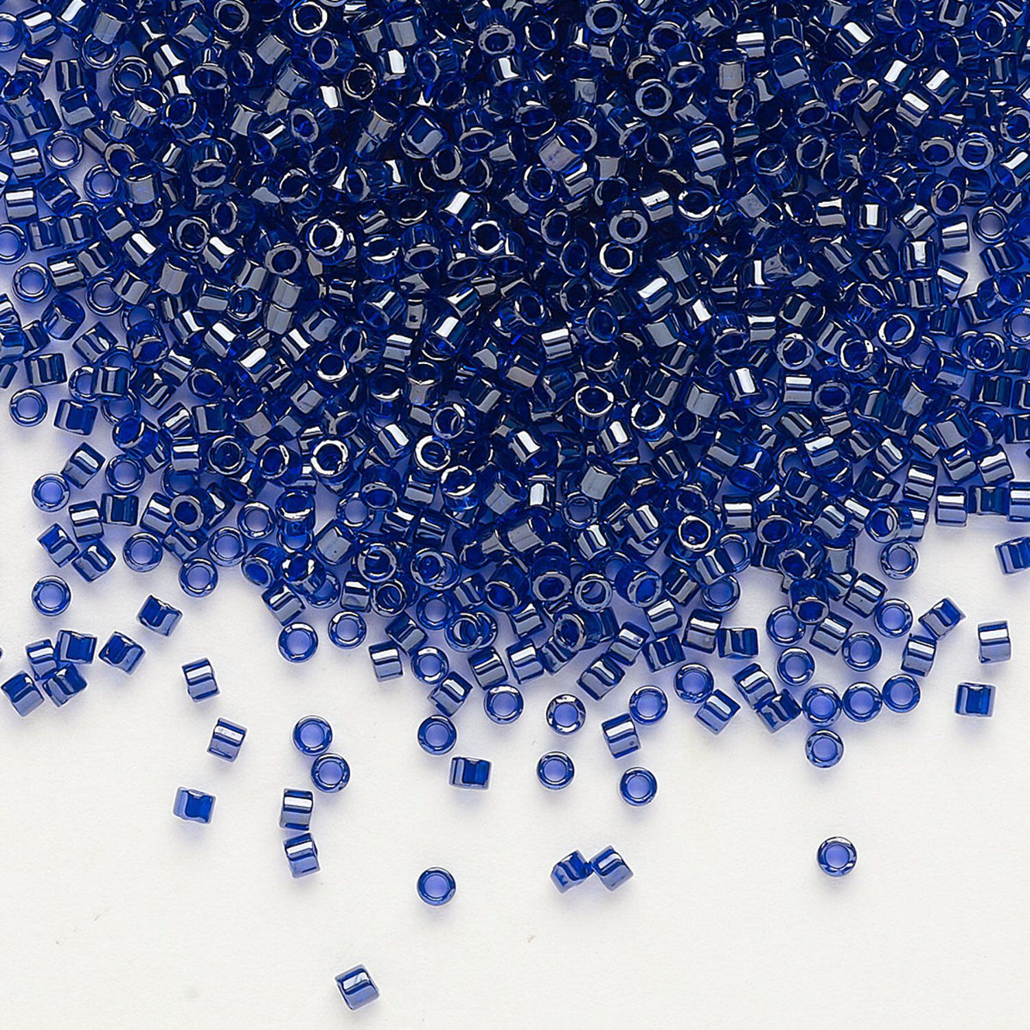 Seed bead, Delica®, glass, pkg/250g, #11 round, translucent cobalt-lined luster blue (DB-0277).