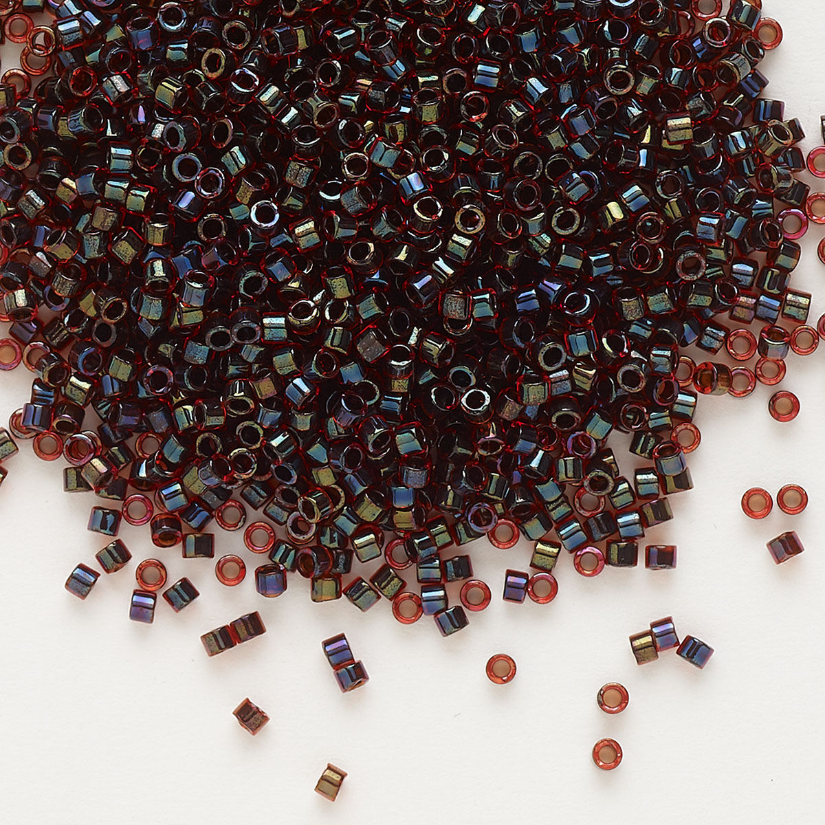 Seed bead, Delica®, glass, pkg/50g, #11 round, translucent garnet-lined luster ruby (DB-0297).