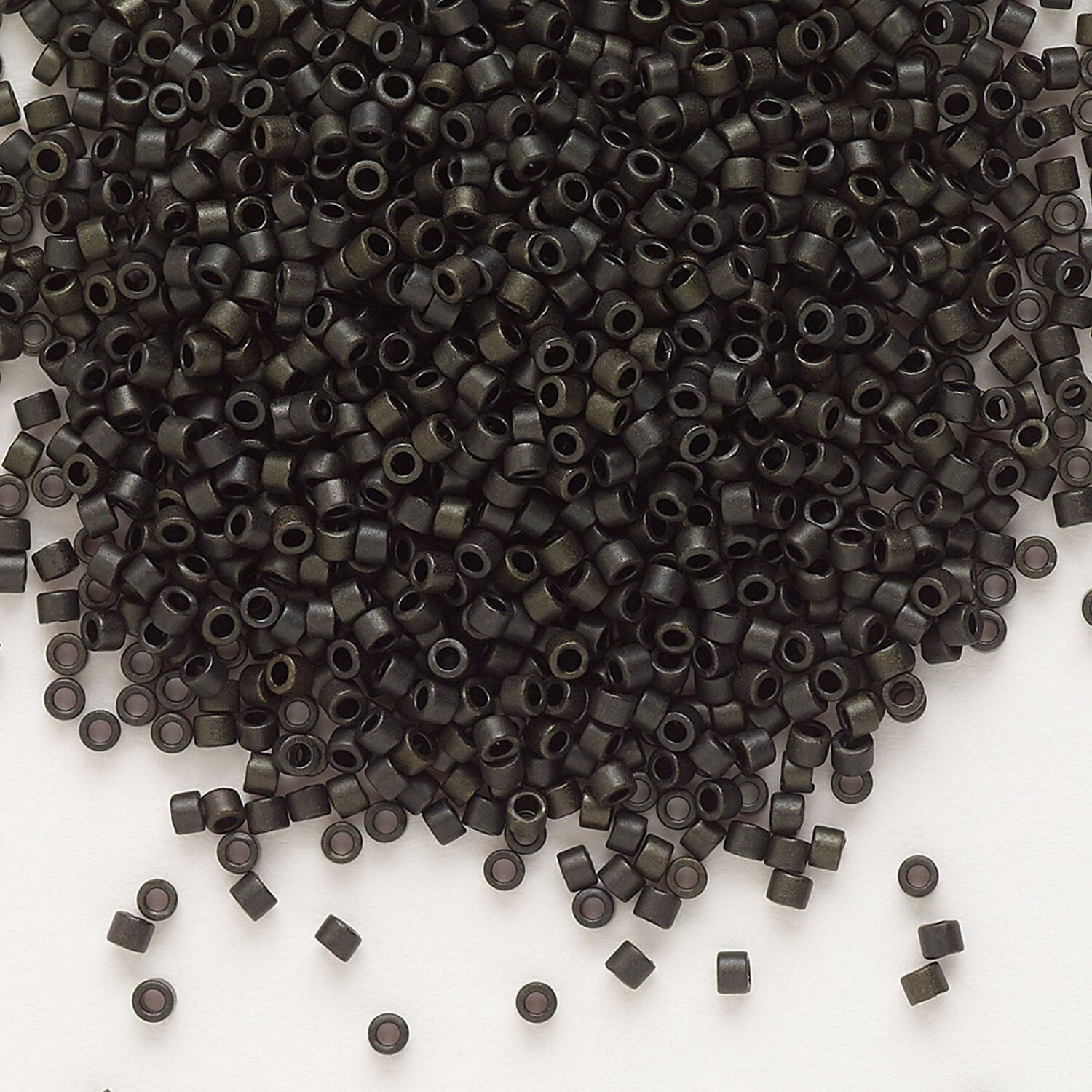 Seed bead, Delica®, glass, pkg/50g, #11 round, opaque matte metallic dark olive (DB-0311).
