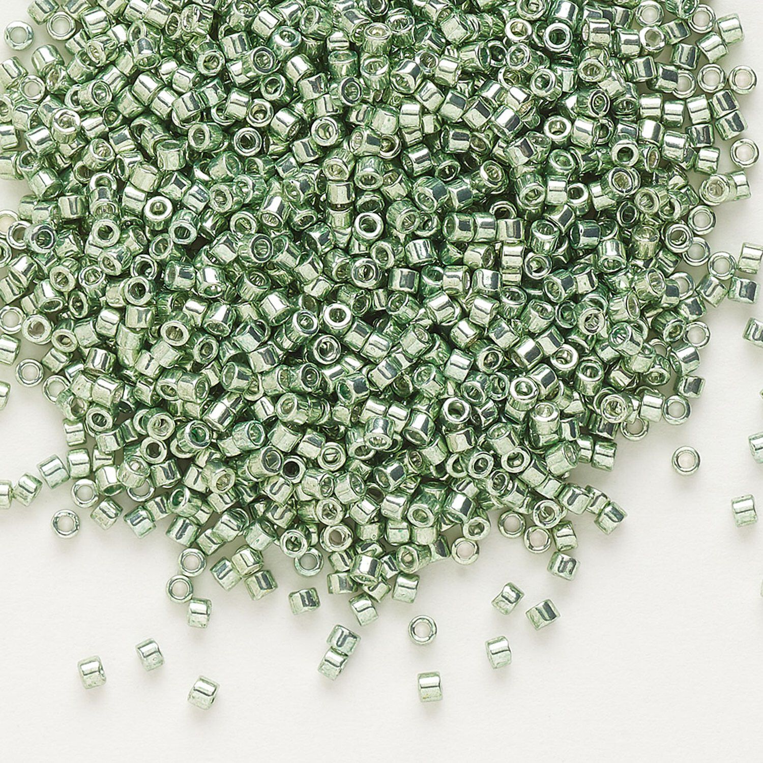 Seed bead, Delica®, glass, pkg/50g, #11 round, opaque galvanized moss green (DB-0413).