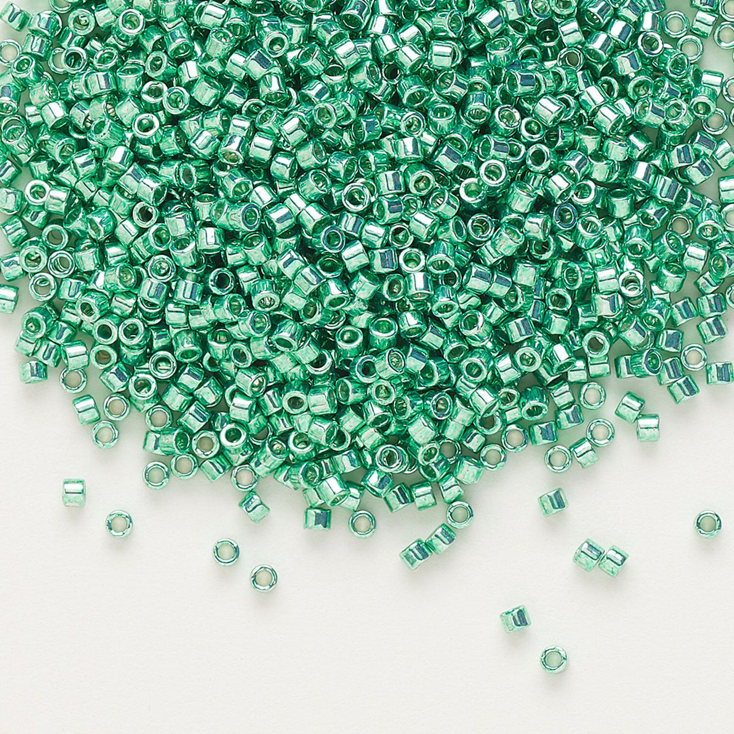 Seed bead, Delica®, glass, pkg/50g, #11 round, opaque galvanized dark mint green (DB-0426).