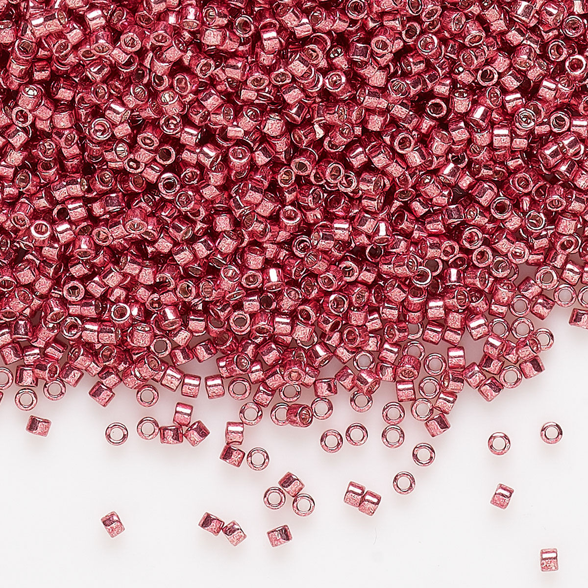 Seed bead, Delica®, glass, pkg/7.5g, #11 round, opaque galvanized light cranberry (DB-0428).