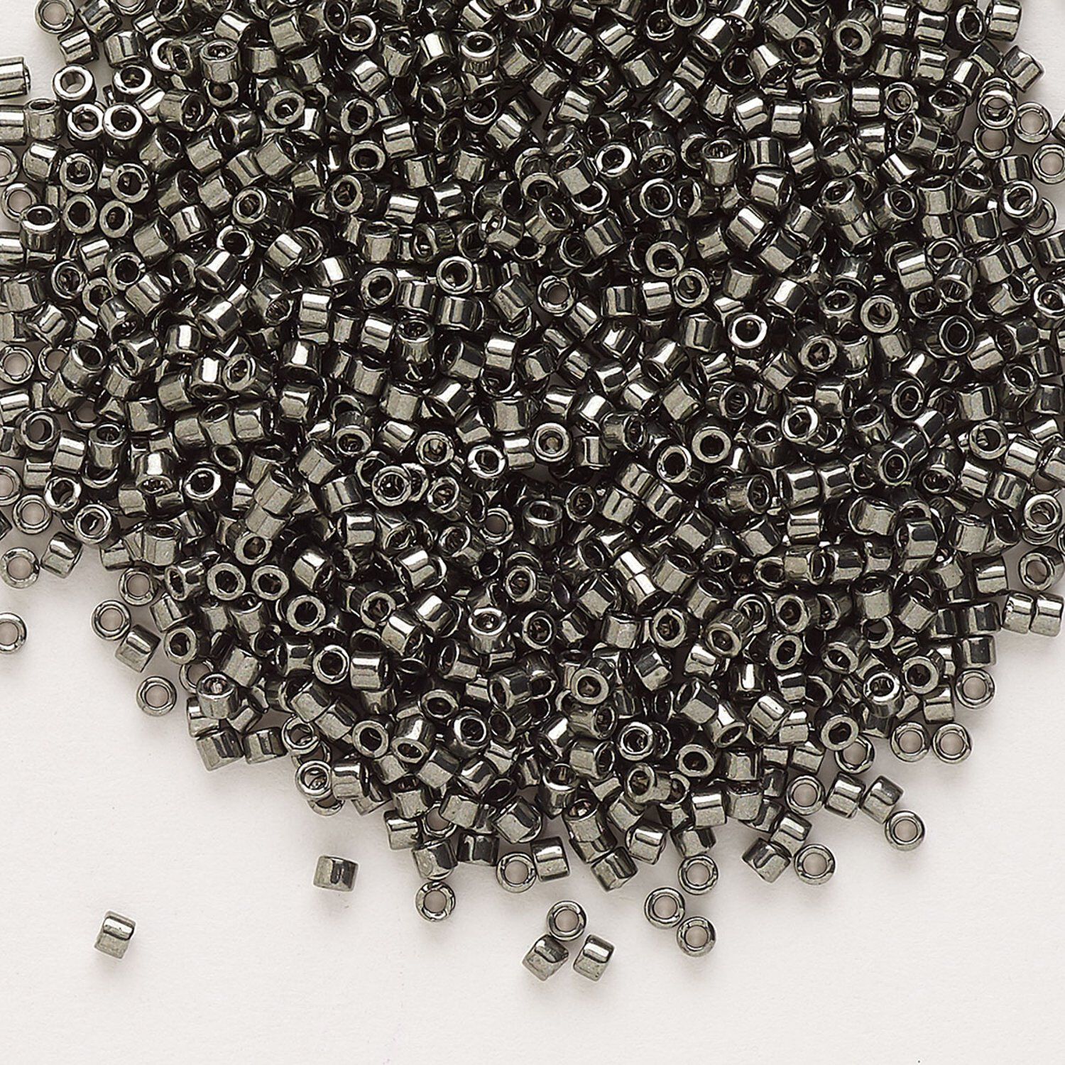 Seed bead, Delica®, glass, pkg/250g, #11 round, opaque nickel-plated dyed color dark grey (DB-0452).