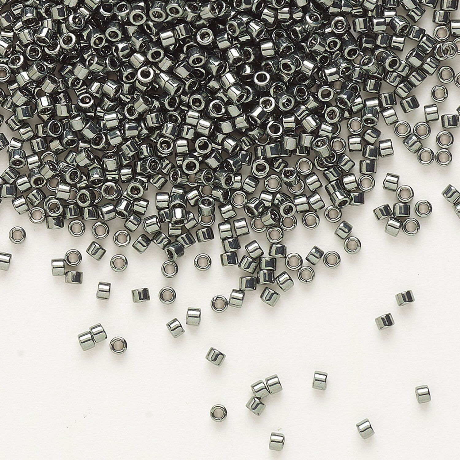 Seed bead, Delica®, glass, pkg/250g, #11 round, opaque nickel-plated dyed color dark steel green (DB-0457).