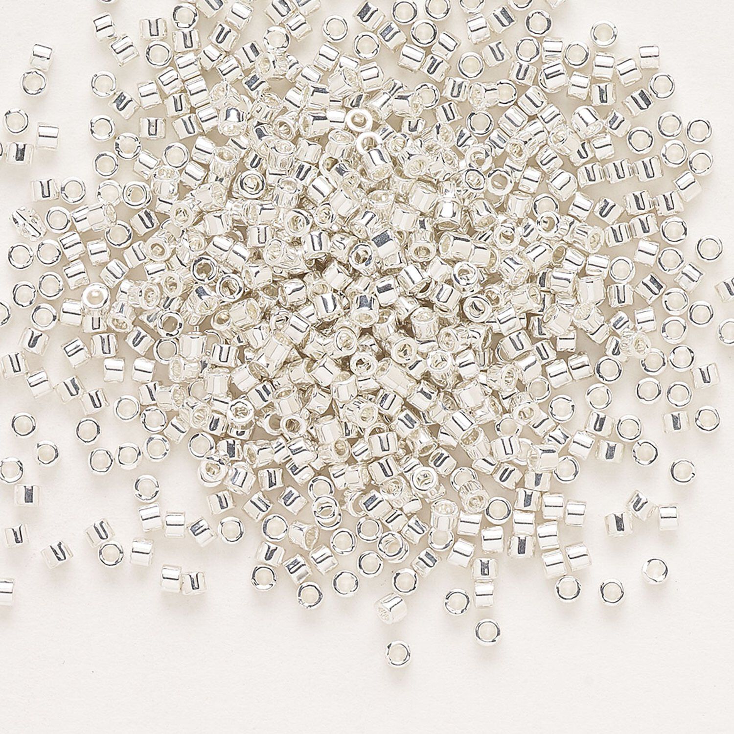 Seed bead, Delica®, glass, pkg/50g, #11 round, opaque silver-plated (DB-0551).