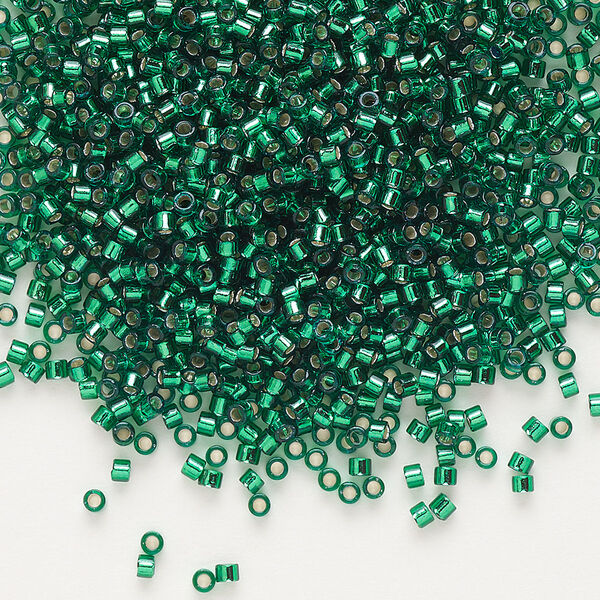 Seed bead, Delica®, glass, pkg/250g, #11 round, transparent silver-lined emerald (DB-0605).