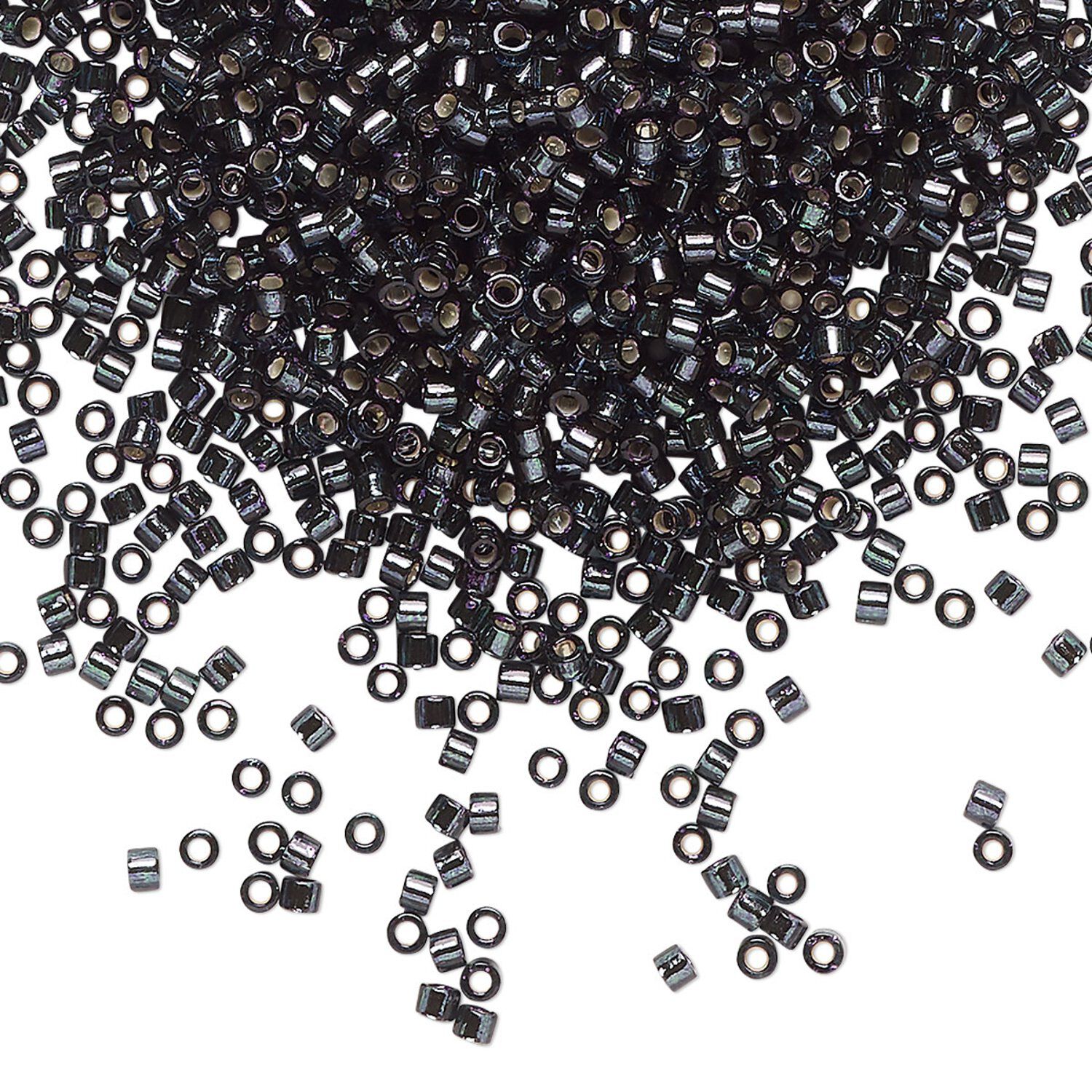 Seed bead, Delica®, glass, pkg/7.5g, #11 round, transparent silver-lined dark olive (DB-0606).
