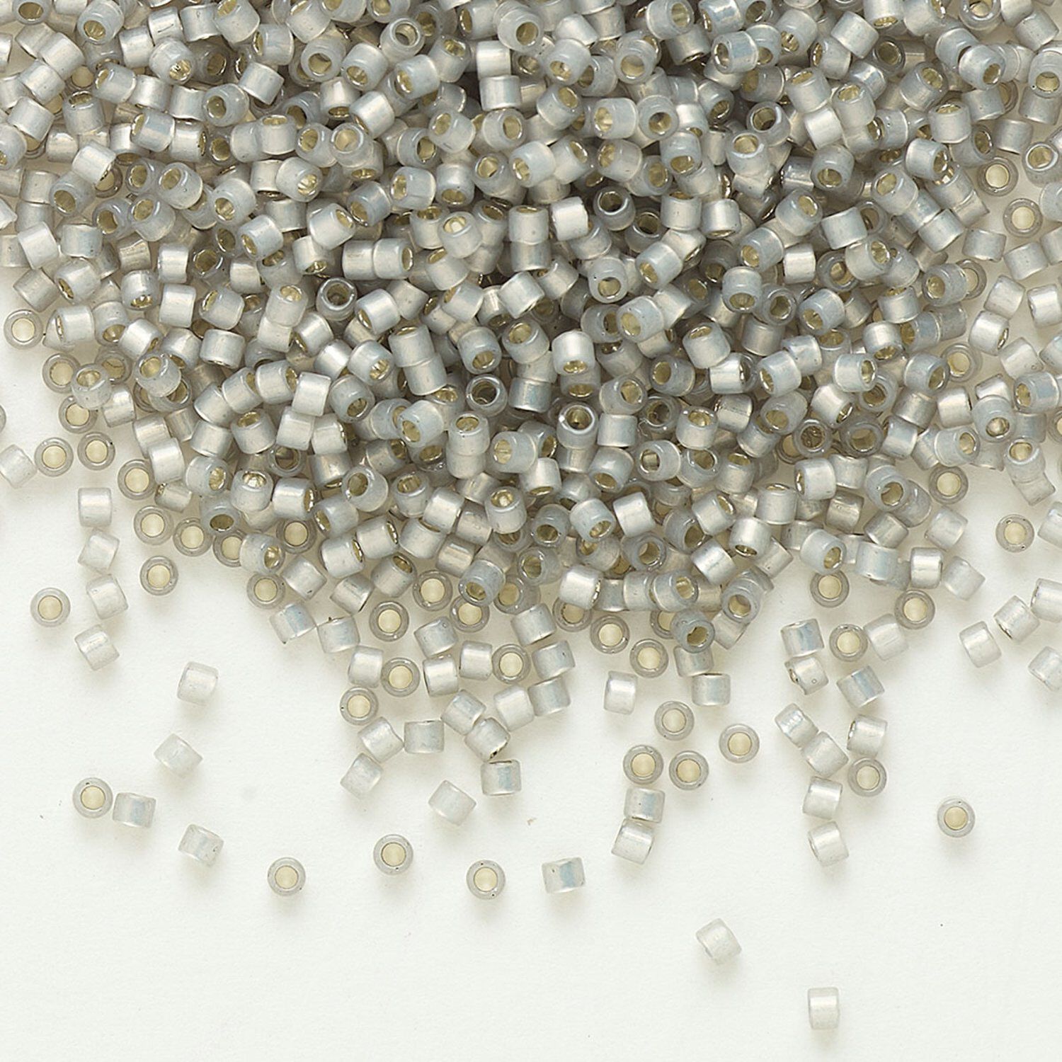 Seed bead, Delica®, glass, pkg/50g, #11 round, translucent silver-lined smoke grey (DB-0630).