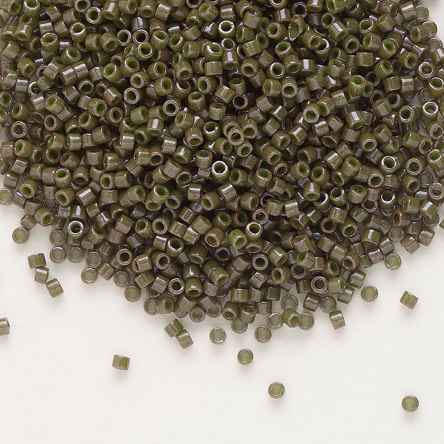 Seed bead, Delica®, glass, pkg/250g, #11 round, opaque olive drab (DB-0657).