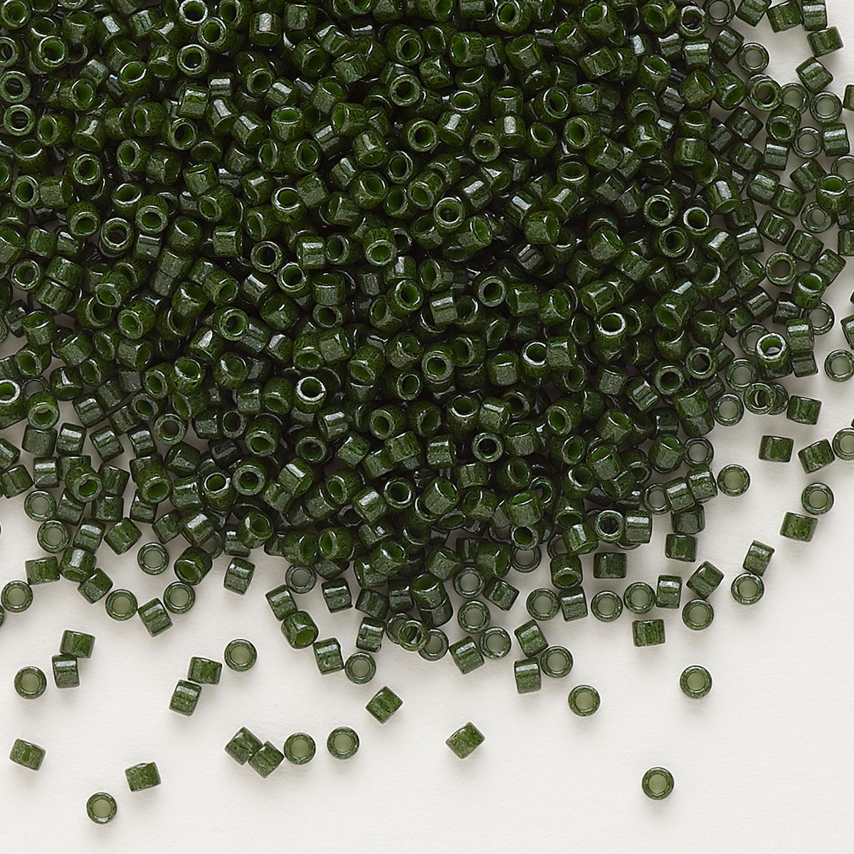 Seed bead, Delica®, glass, pkg/250g, #11 round, opaque olive (DB-0663).