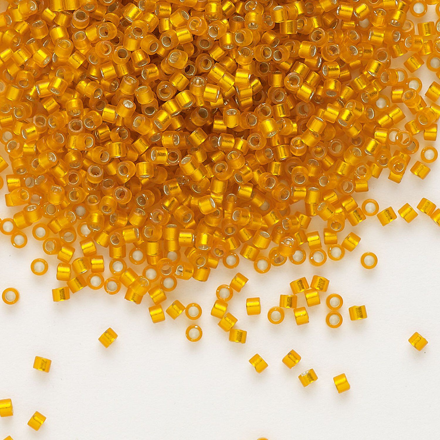 Seed bead, Delica®, glass, pkg/50g, #11 round, translucent semi-matte silver-lined orange (DB-0681).
