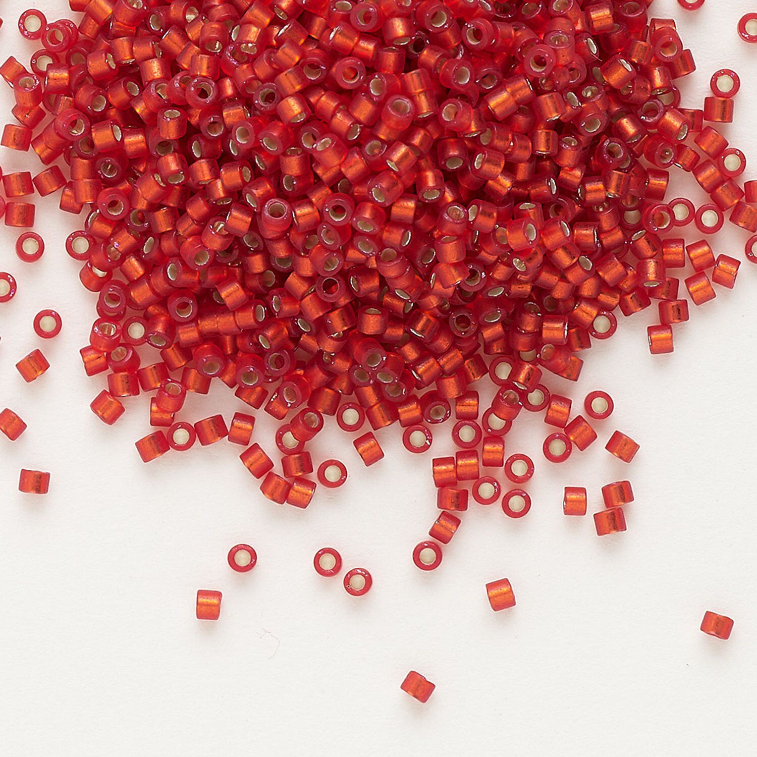 Seed bead, Delica®, glass, pkg/250g, #11 round, translucent semi-matte silver-lined red orange (DB-0683).