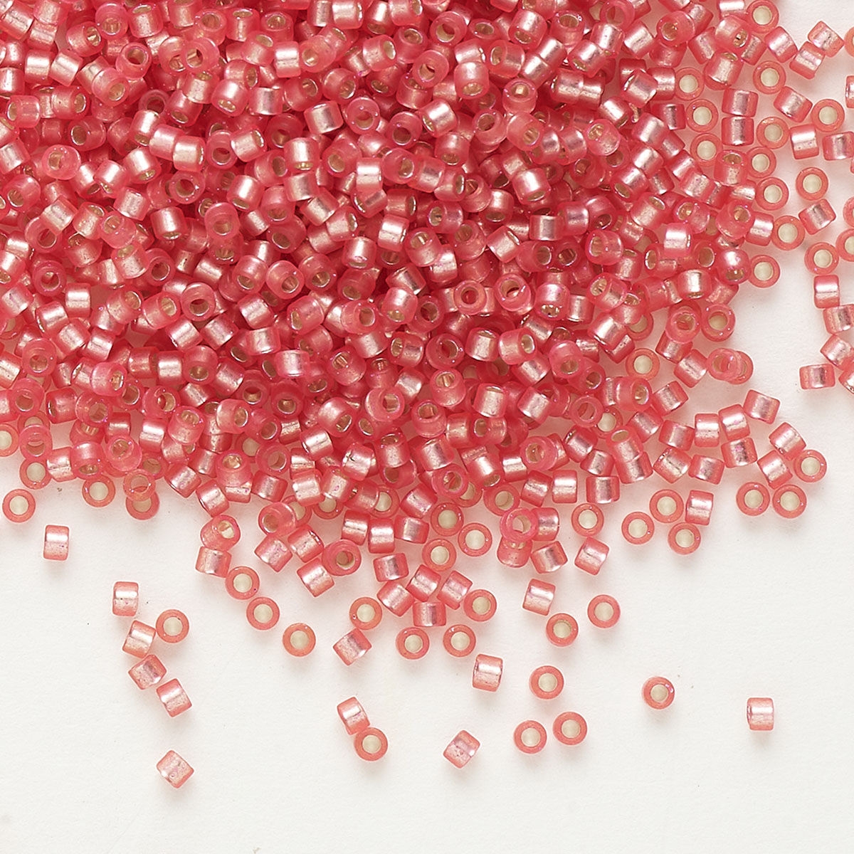 Seed bead, Delica®, glass, pkg/7.5g, #11 round, translucent semi-matte silver-lined watermelon (DB-0684).