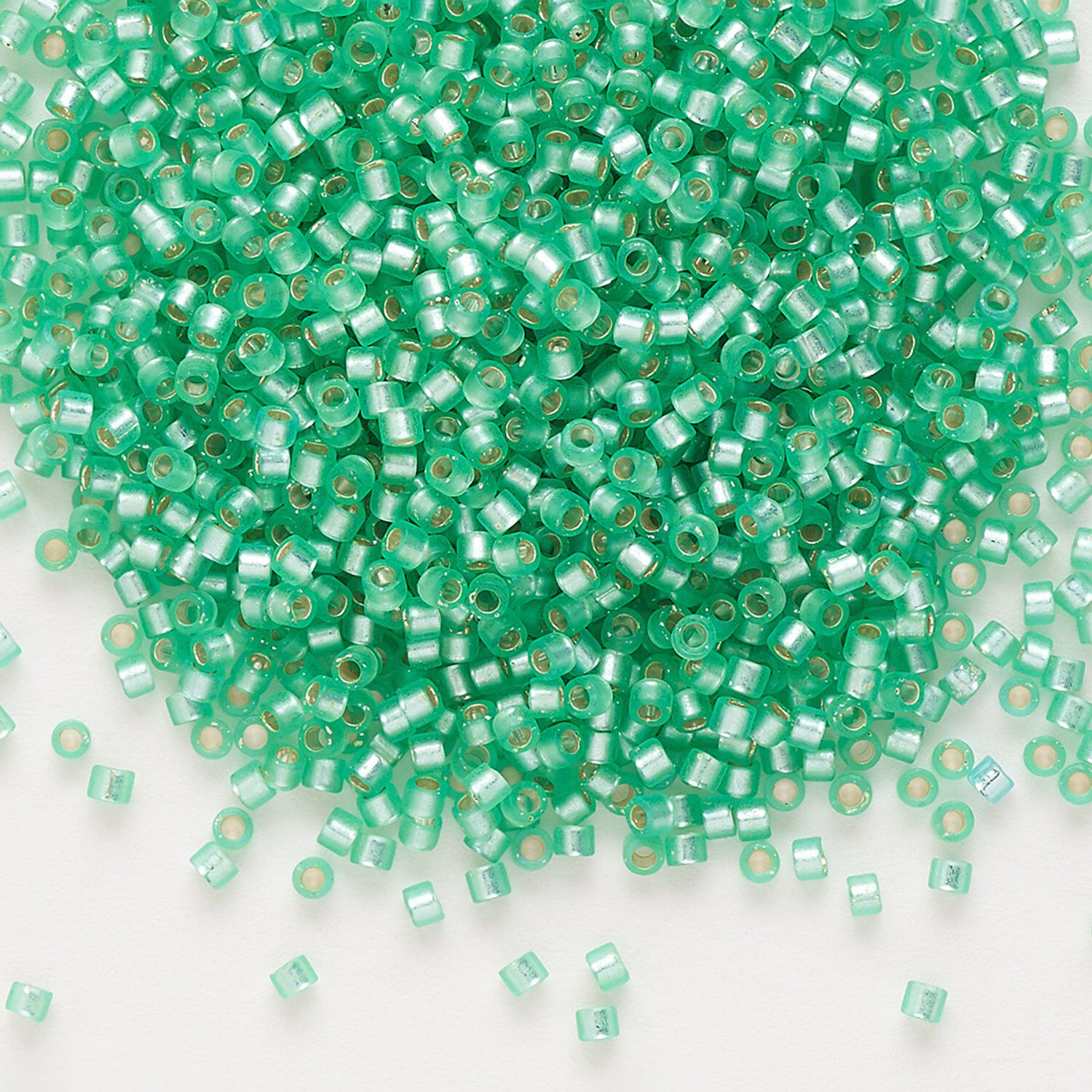 Seed bead, Delica®, glass, pkg/250g, #11 round, translucent semi-matte silver-lined mint green (DB-0691).