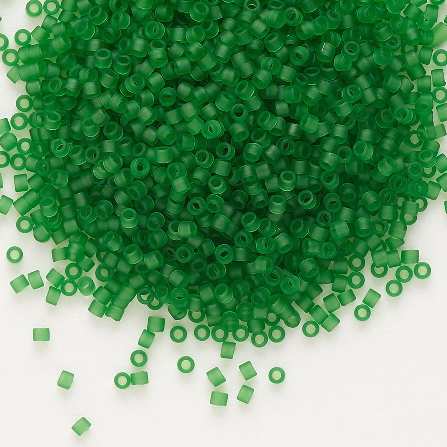 Seed bead, Delica®, glass, pkg/50g, #11 round, translucent matte green (DB-0746).