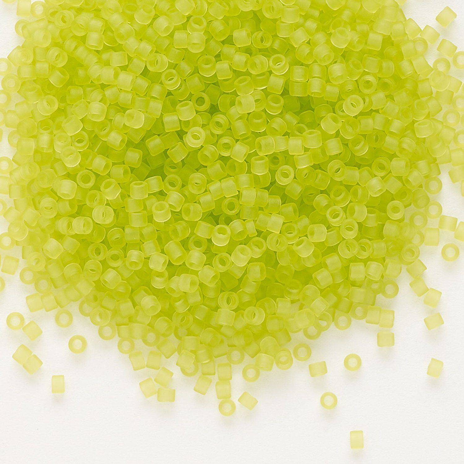 Seed bead, Delica®, glass, pkg/50g, #11 round, translucent matte chartreuse (DB-0766).