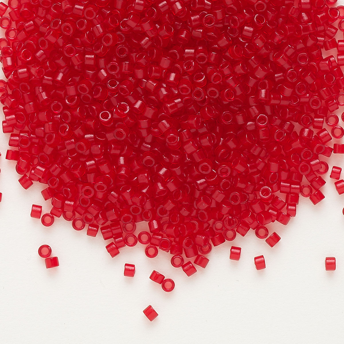 Seed bead, Delica®, glass, pkg/7.5g, #11 round, translucent matte red red (DB-0774).