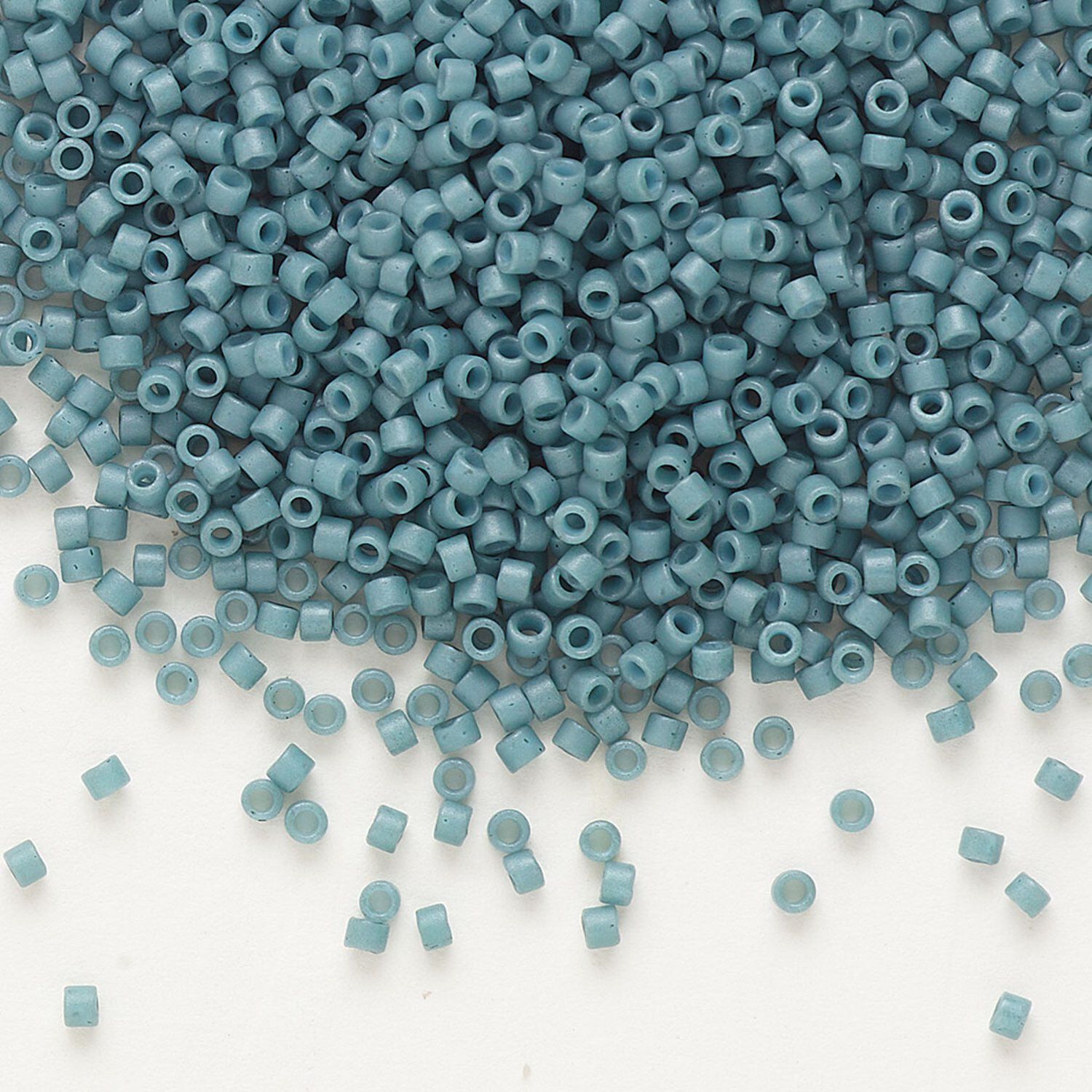 Seed bead, Delica®, glass, pkg/50g, #11 round, opaque matte shale light blue (DB-0792).