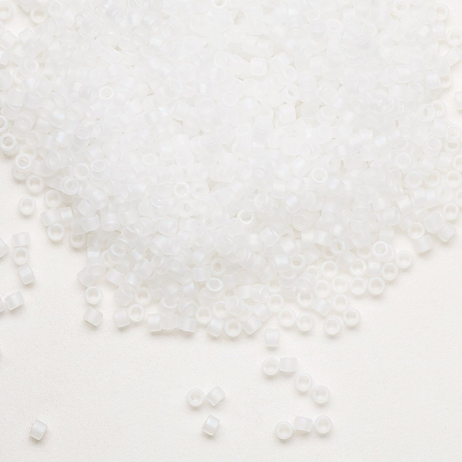 Seed bead, Delica®, glass, pkg/250g, #11 round, translucent matte rainbow crystal clear (DB-0851).