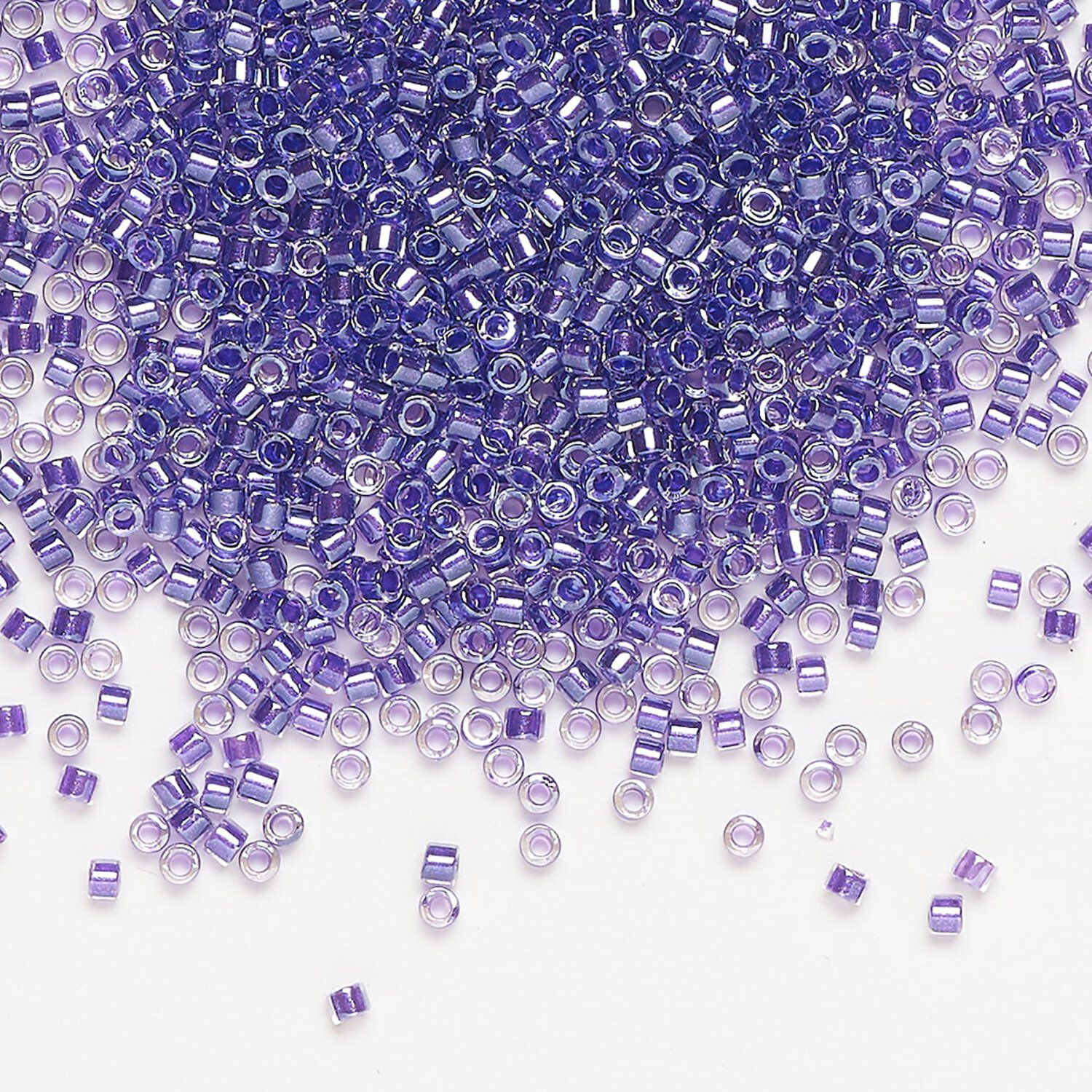 Seed bead, Delica®, glass, pkg/50g, #11 round, translucent purple-lined luster crystal clear (DB-0906).