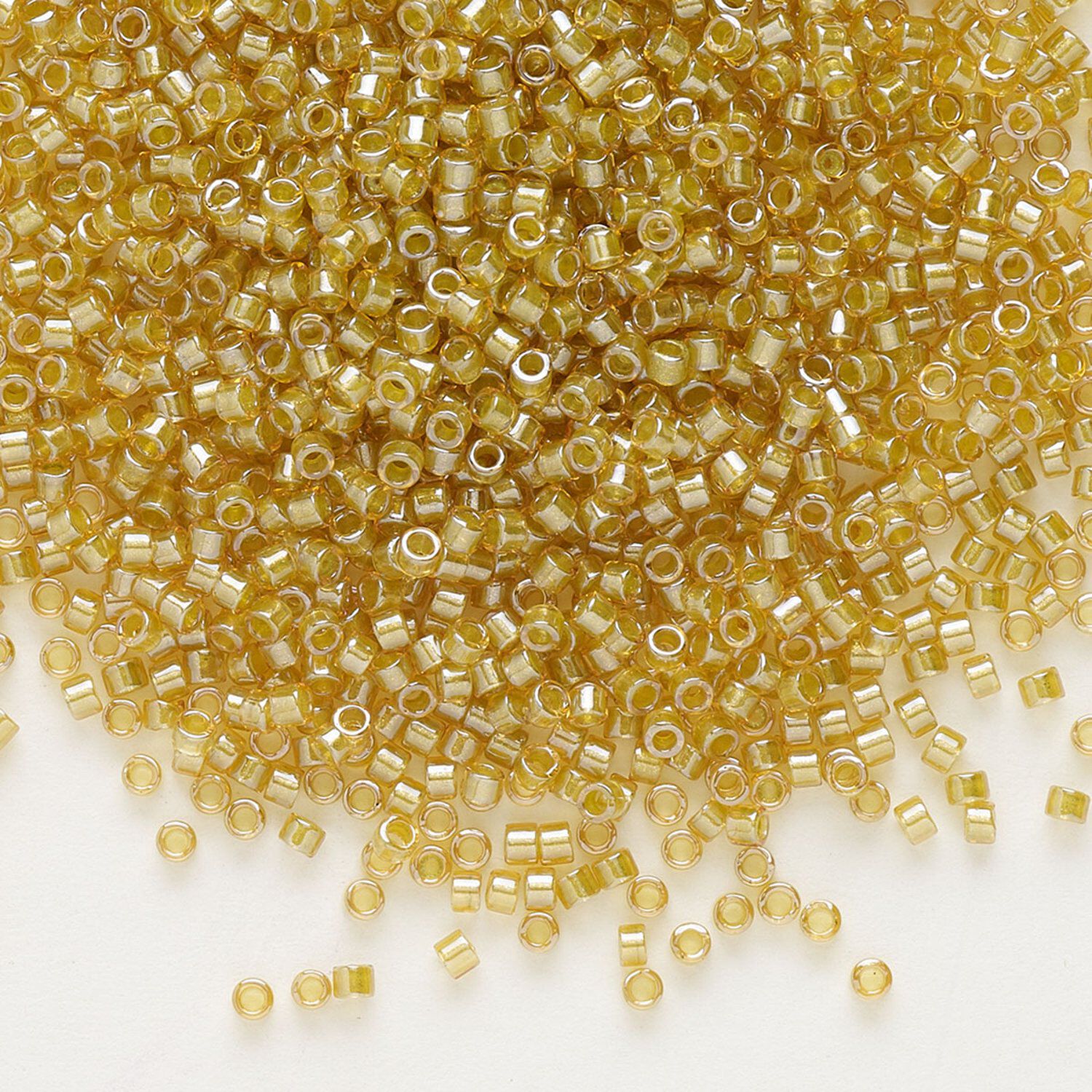 Seed bead, Delica®, glass, pkg/50g, #11 round, translucent light peridot-lined luster topaz (DB-0911).