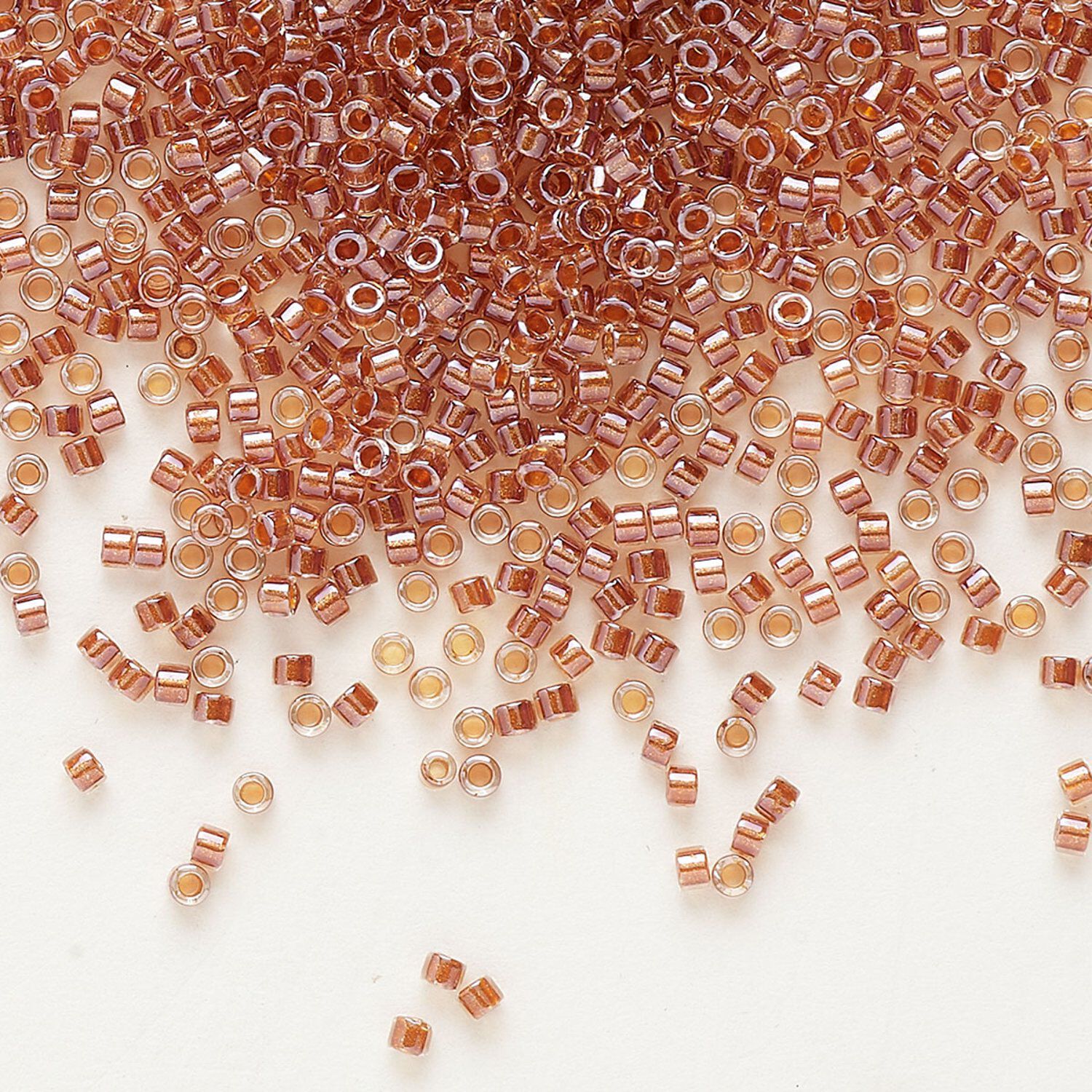 Seed bead, Delica®, glass, pkg/50g, #11 round, translucent pink copper-lined luster crystal clear (DB-0915).