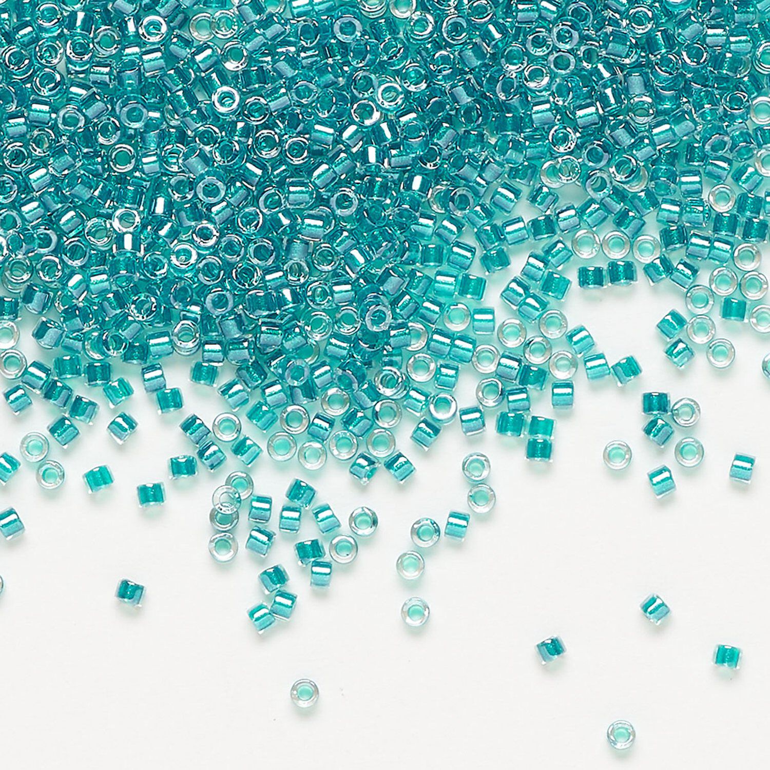 Seed bead, Delica®, glass, pkg/50g, #11 round, translucent dark aqua-lined luster crystal clear (DB-0918).