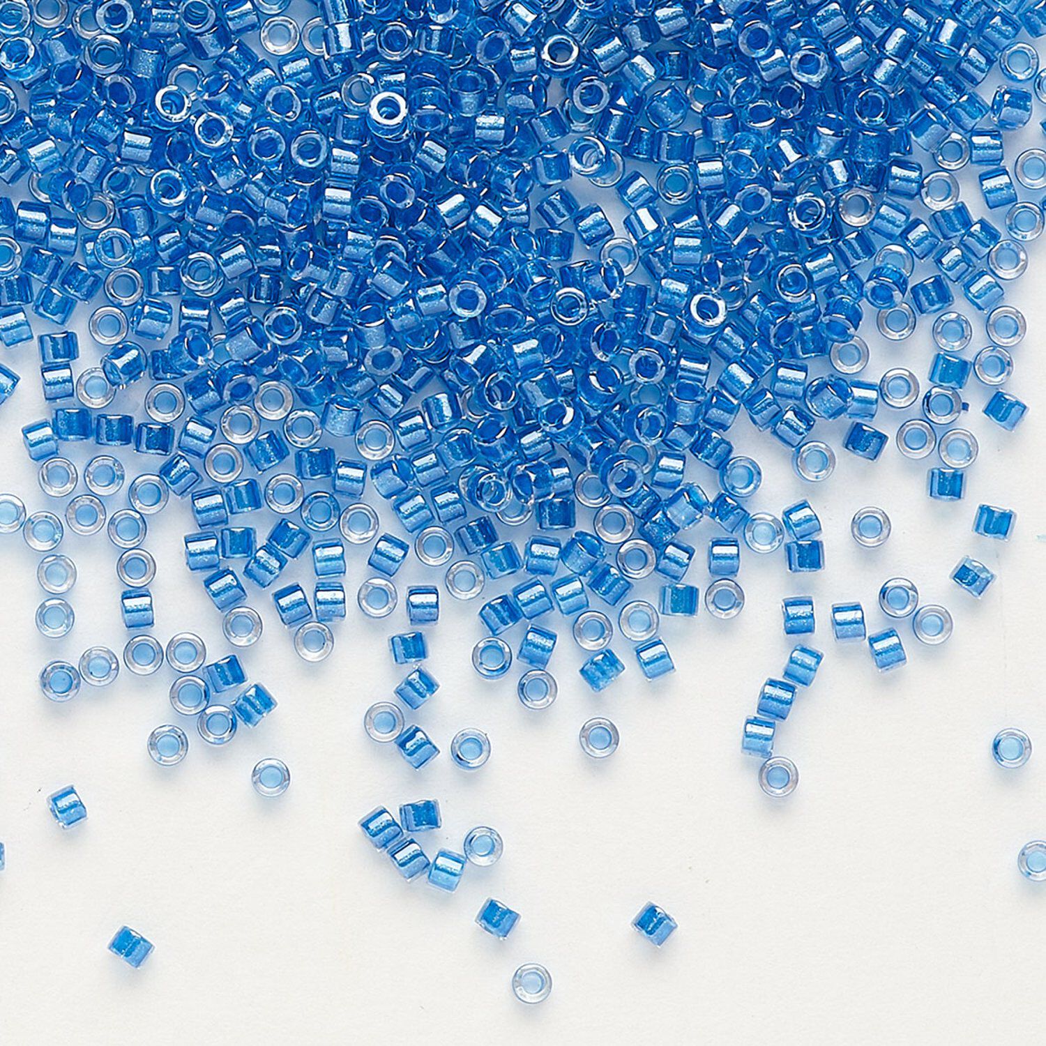 Seed bead, Delica®, glass, pkg/50g, #11 round, translucent cerulean blue-lined luster crystal clear (DB-0920).