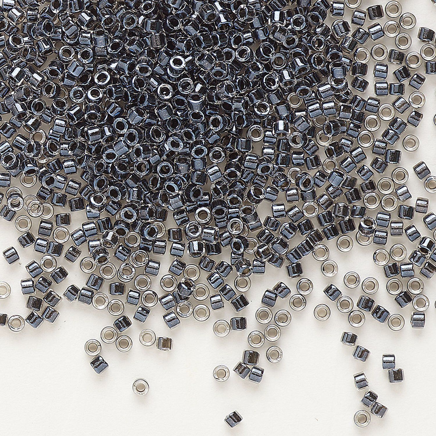 Seed bead, Delica®, glass, pkg/250g, #11 round, translucent charcoal-lined luster crystal clear (DB-0925).