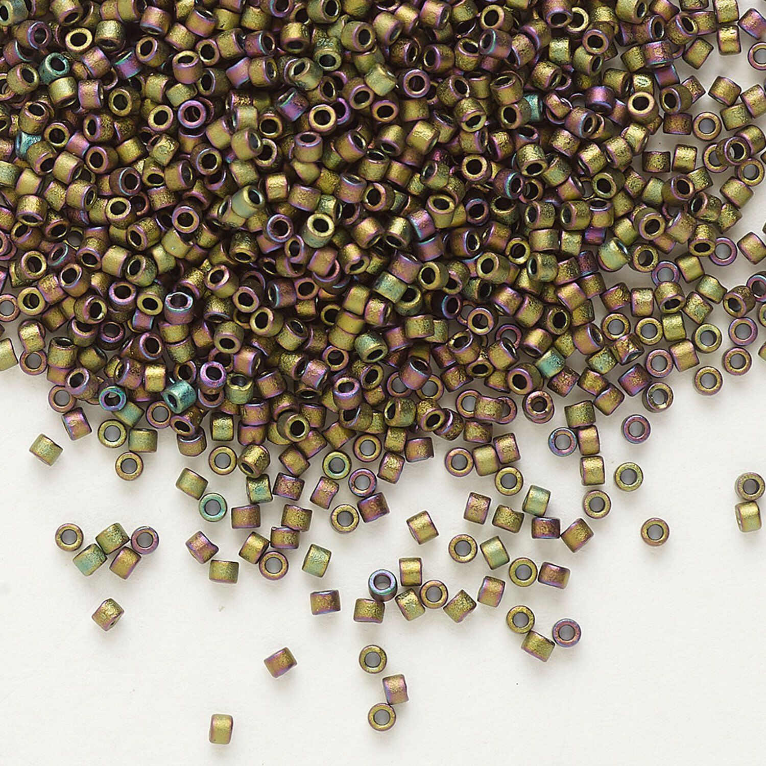 Seed bead, Delica®, glass, pkg/250g, #11 round, opaque matte metallic gold iris grey dusk (DB-1055).