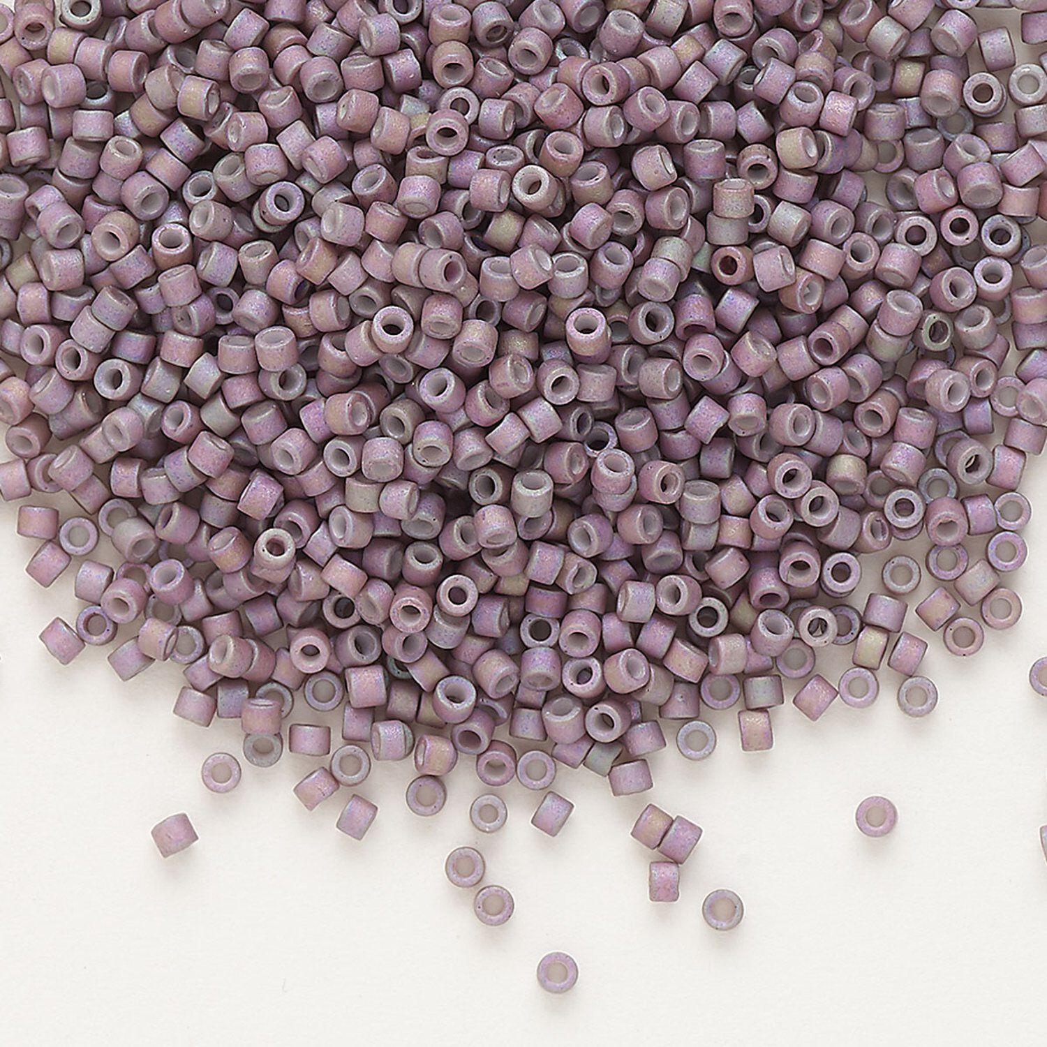 Seed bead, Delica®, glass, pkg/7.5g, #11 round, opaque gold luster rainbow light lilac (DB-1064).