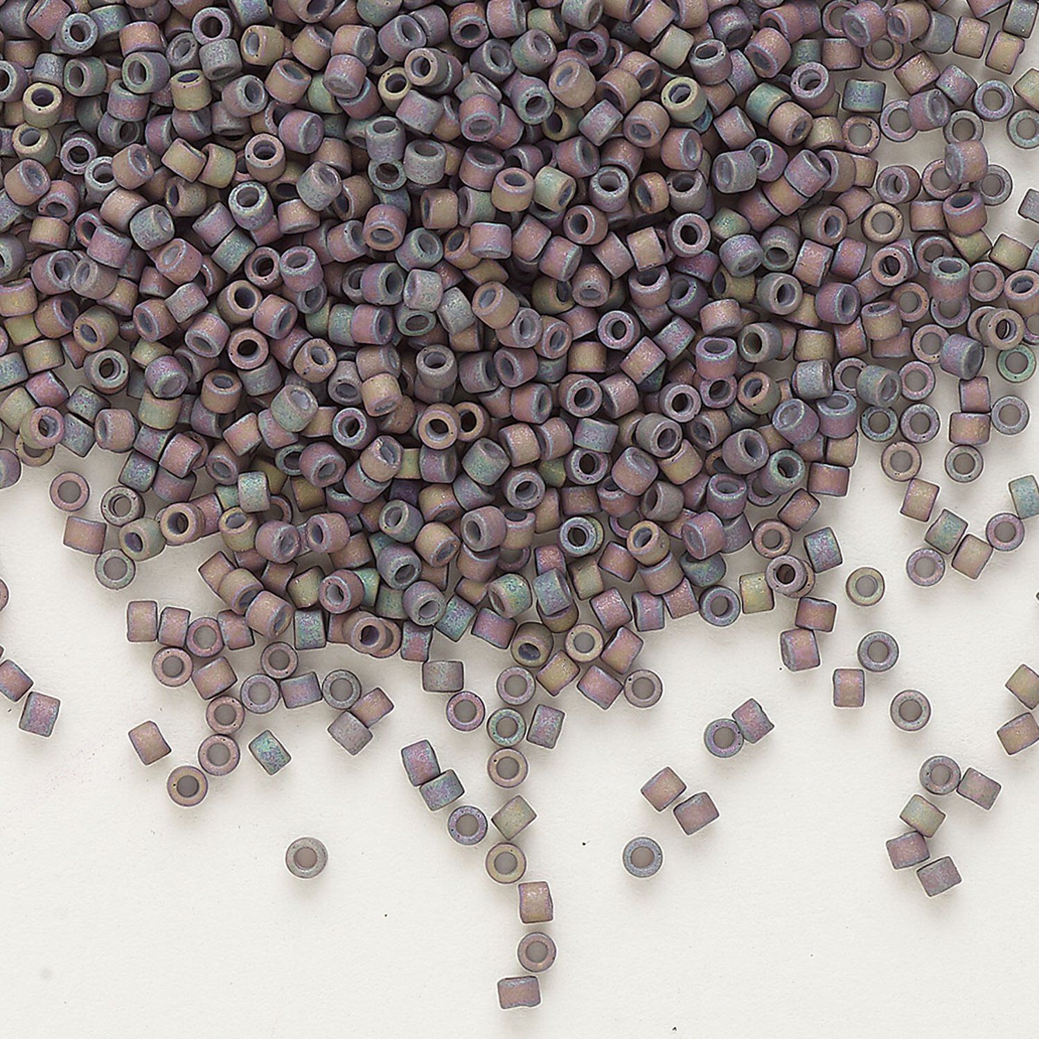 Seed bead, Delica®, glass, pkg/7.5g, #11 round, opaque gold luster rainbow lilac (DB-1067).